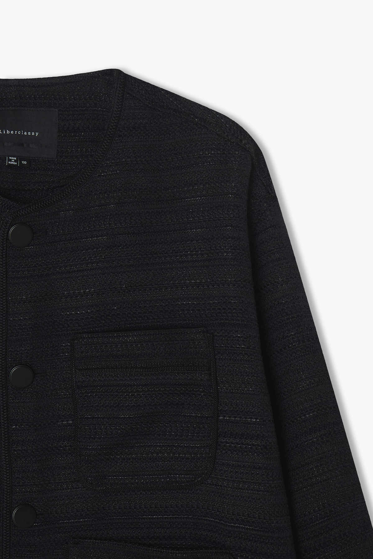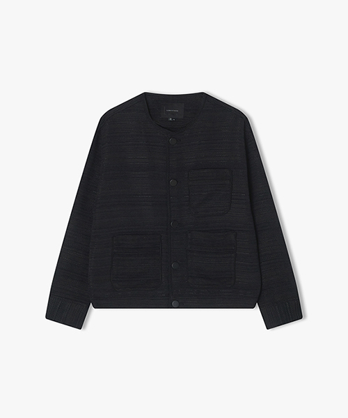 [25SS] LLS32508 블랙 라운드넥 트리밍 트위드 자켓