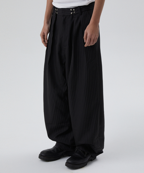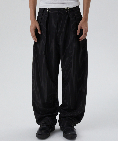 [서강준 PICK] 투 턱 와이드 핀 스트라이프 슬랙스 [BLACK]