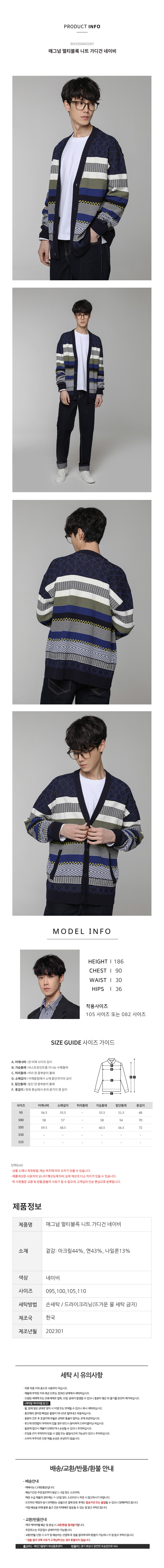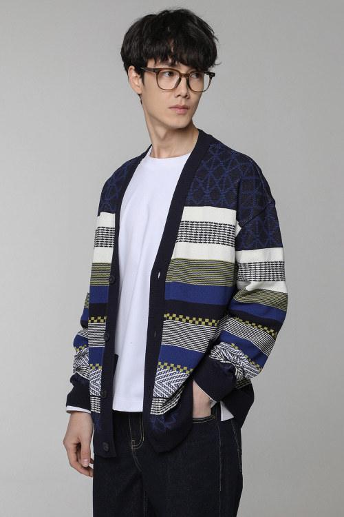 멀티블록 니트 가디건 네이비 BN3SSW832NY