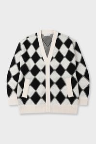 블랙 화이트 다이아 패턴 가디건 아이보리 BN4SSW825IV