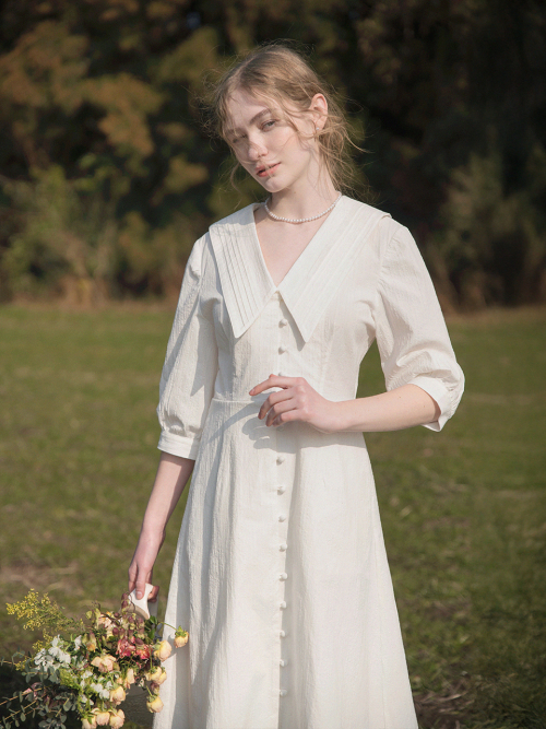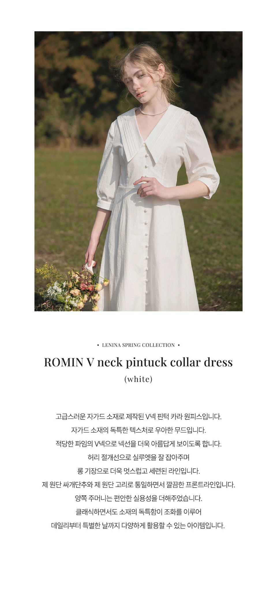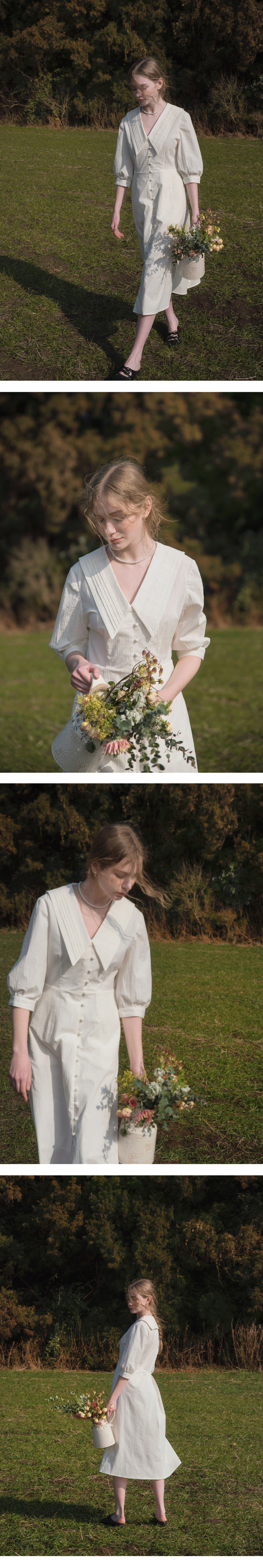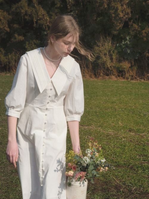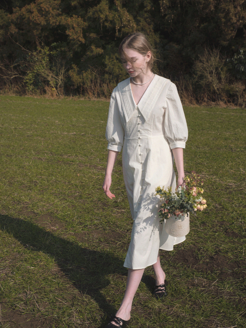 ROMIN V neck pintuck collar dress_WHITE