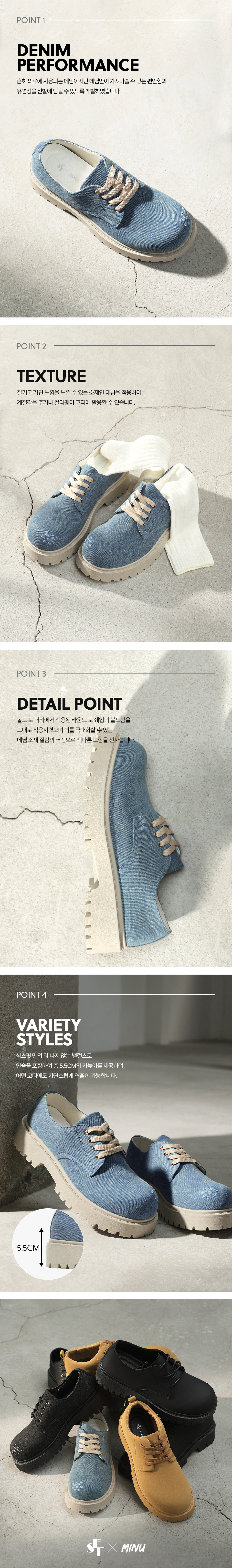 [미누의코디 x 식스핏] BOLD TOE DERBY (DENIM) - BLACK