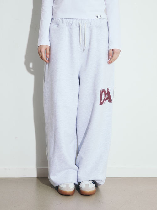 DARE BEADS SWEAT JOGGER PANTS, WHITE MELANGE