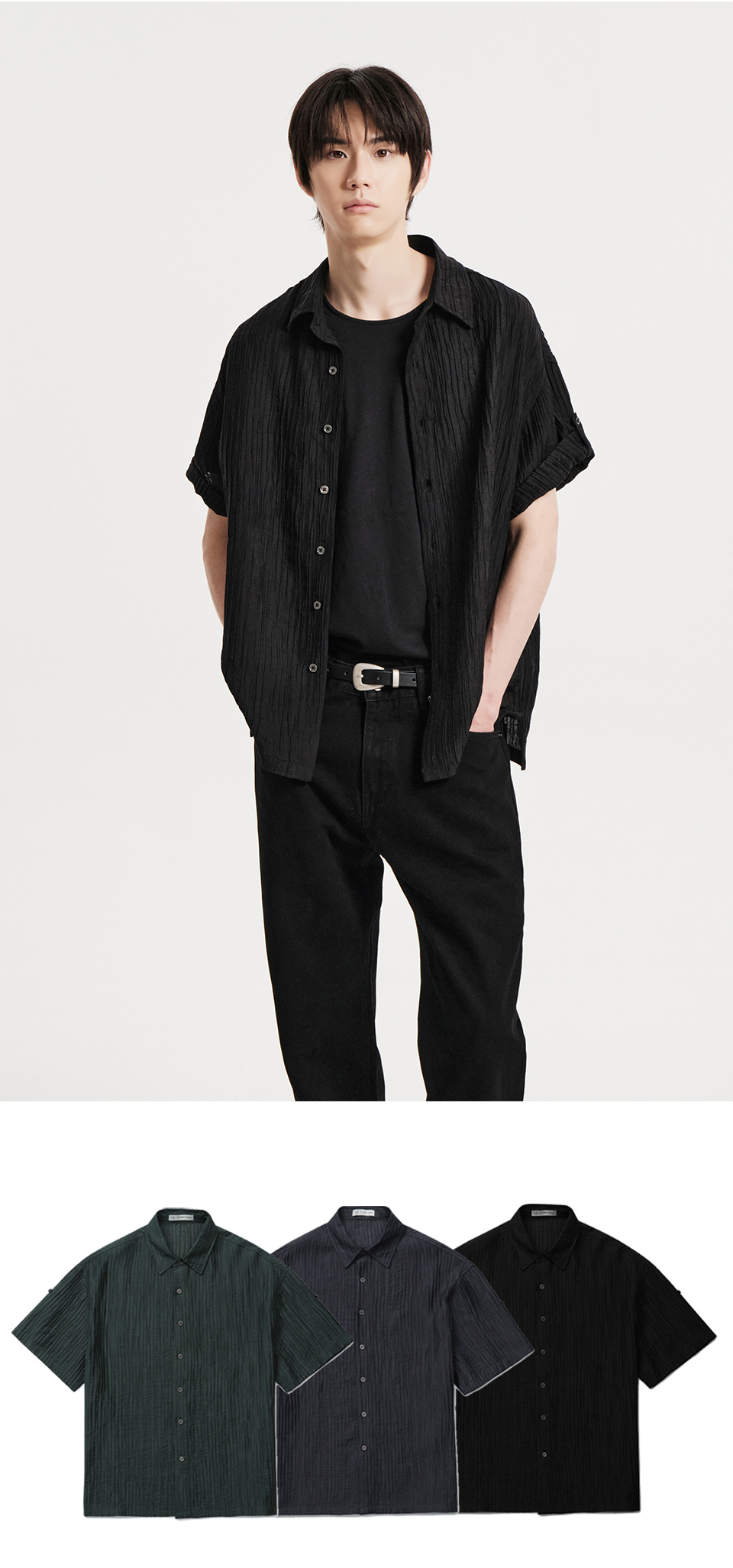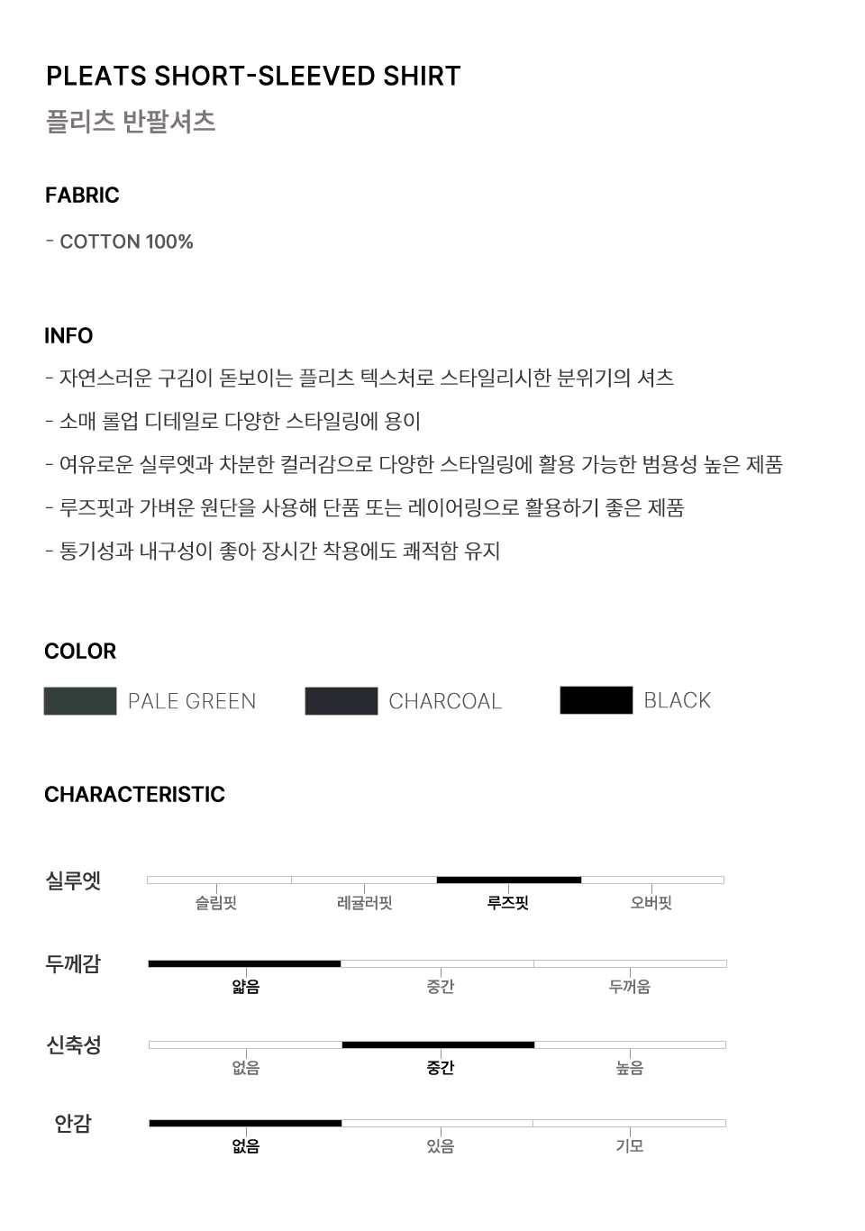플리츠 반팔셔츠 (차콜)