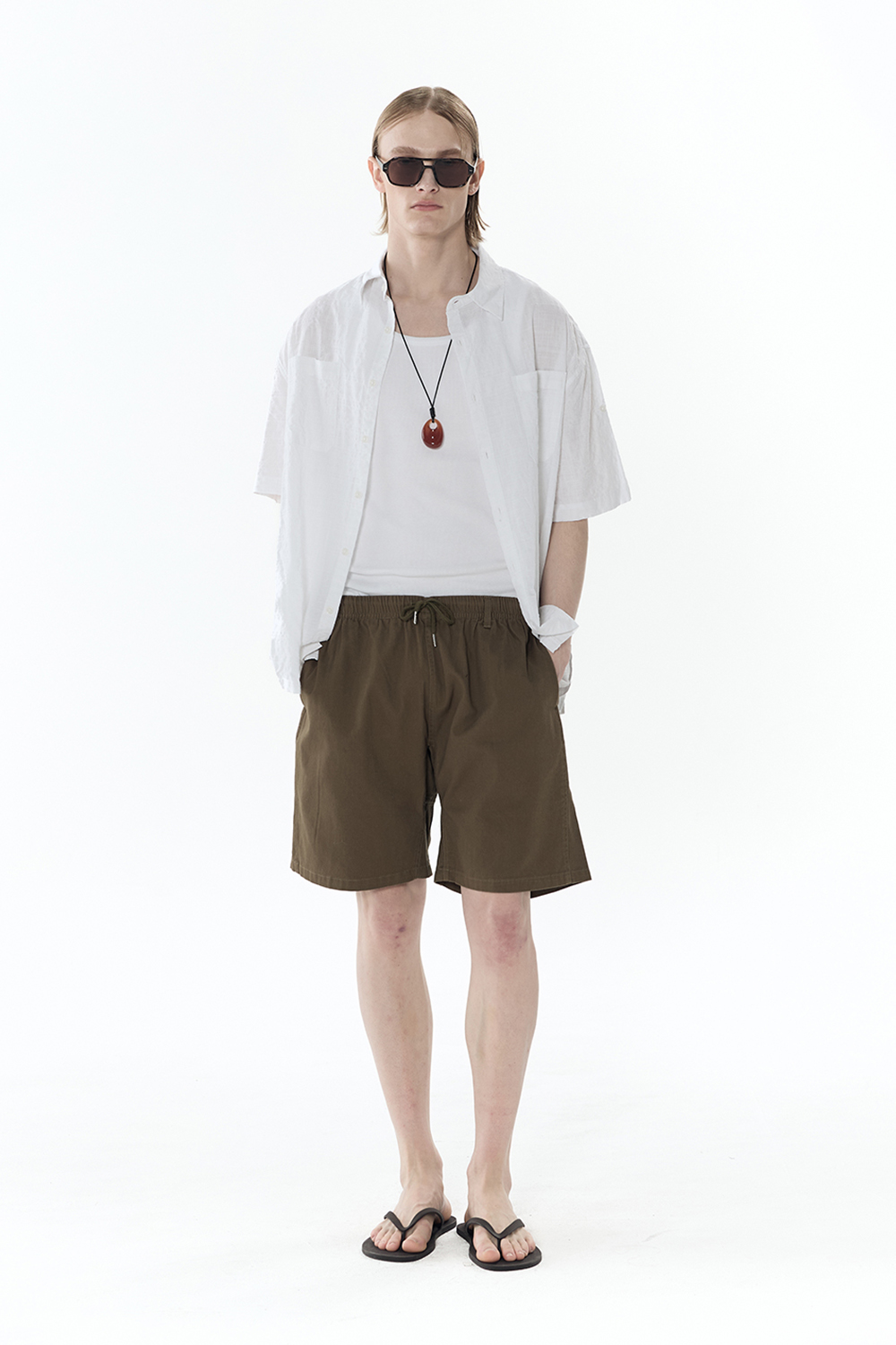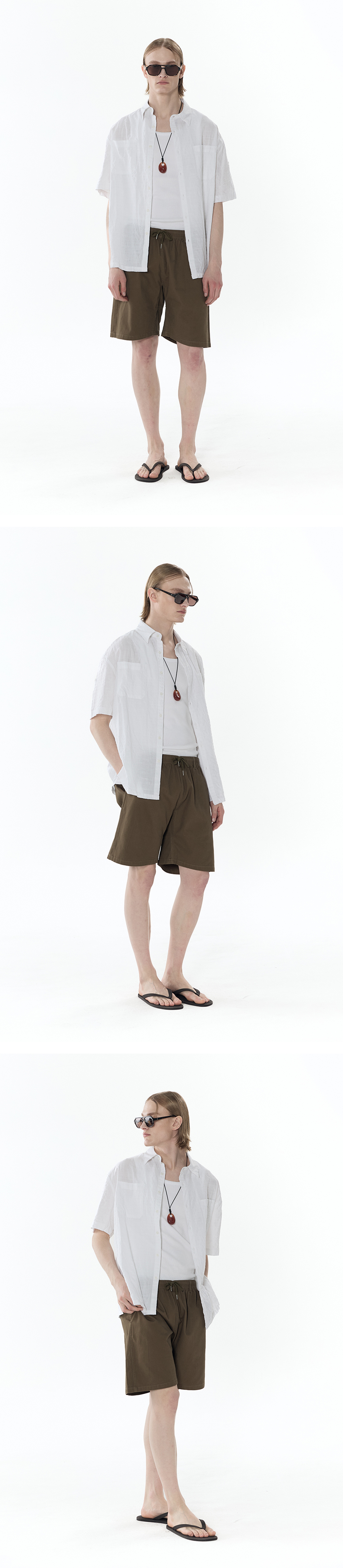 루즈핏 시어서커 반팔셔츠 (카키)