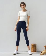 여성 요가복 DEVI-B0037-네이비 필라테스 8부 레깅스 군살제로