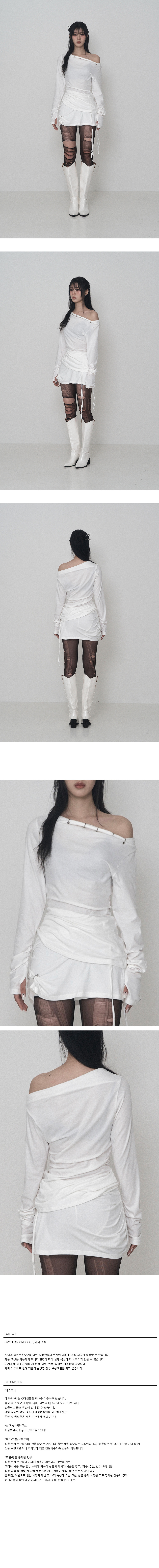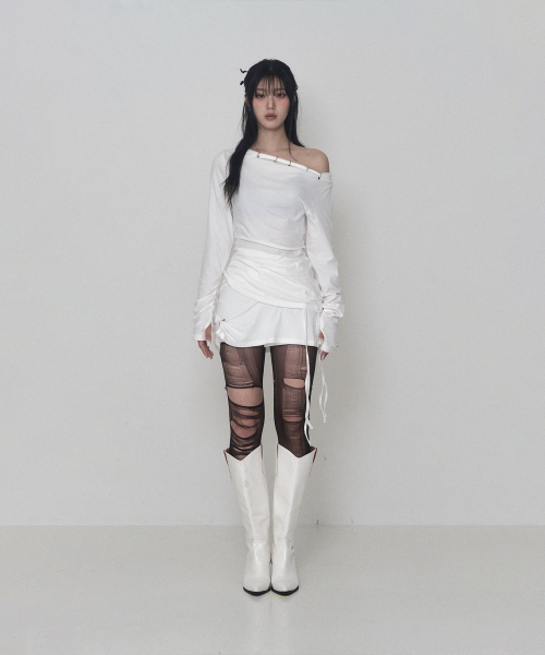 -원숄더 오프라인으로 쇄골이 도드라지는 피어싱 디테일 롱슬리브