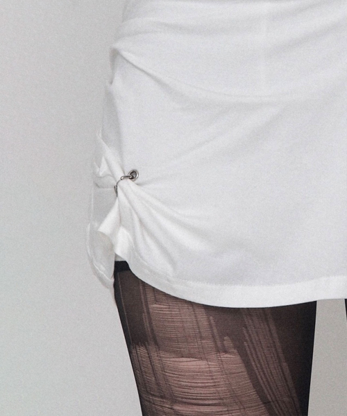 -원사이드 셔링 디테일로 언발한 기장감 연출