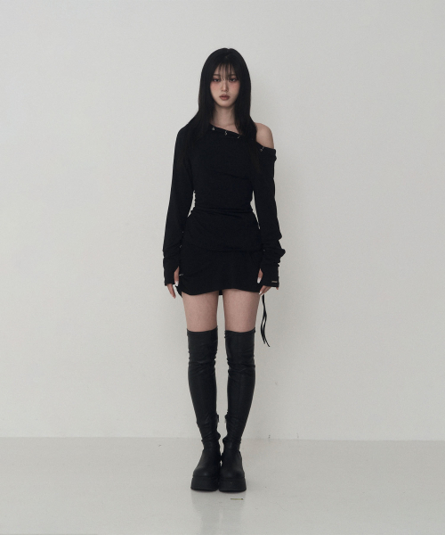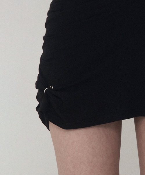 피어싱 드레이프 셋업 미니 스커트 (블랙)