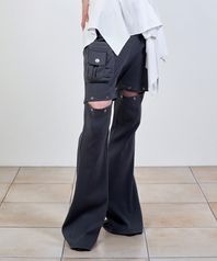 PINTUCK WIDE PANTS (UNISEX) BLACK