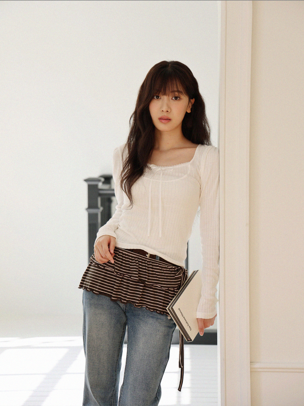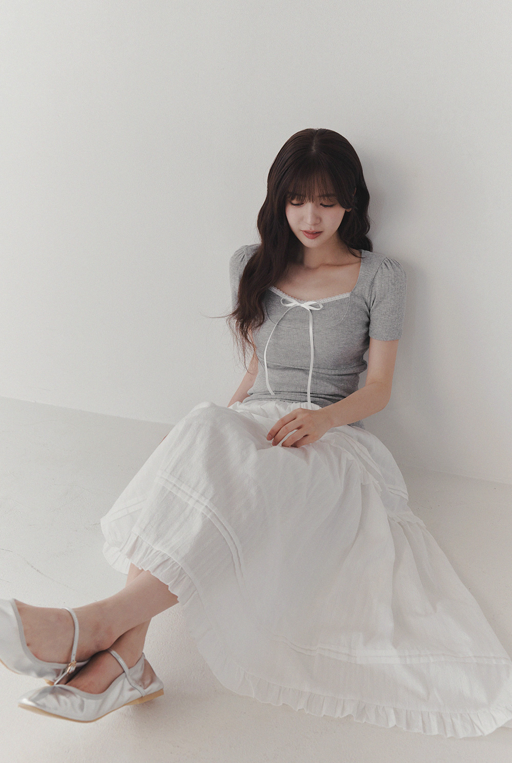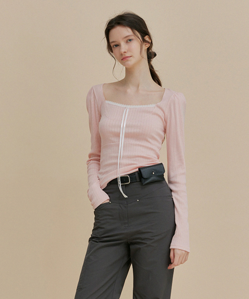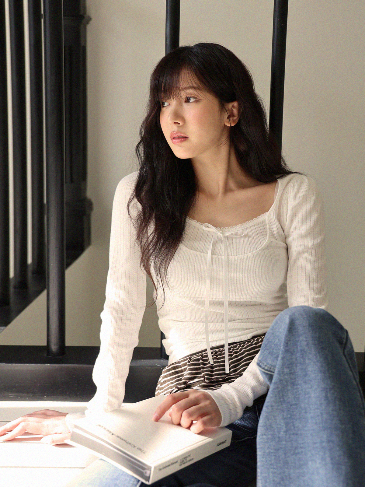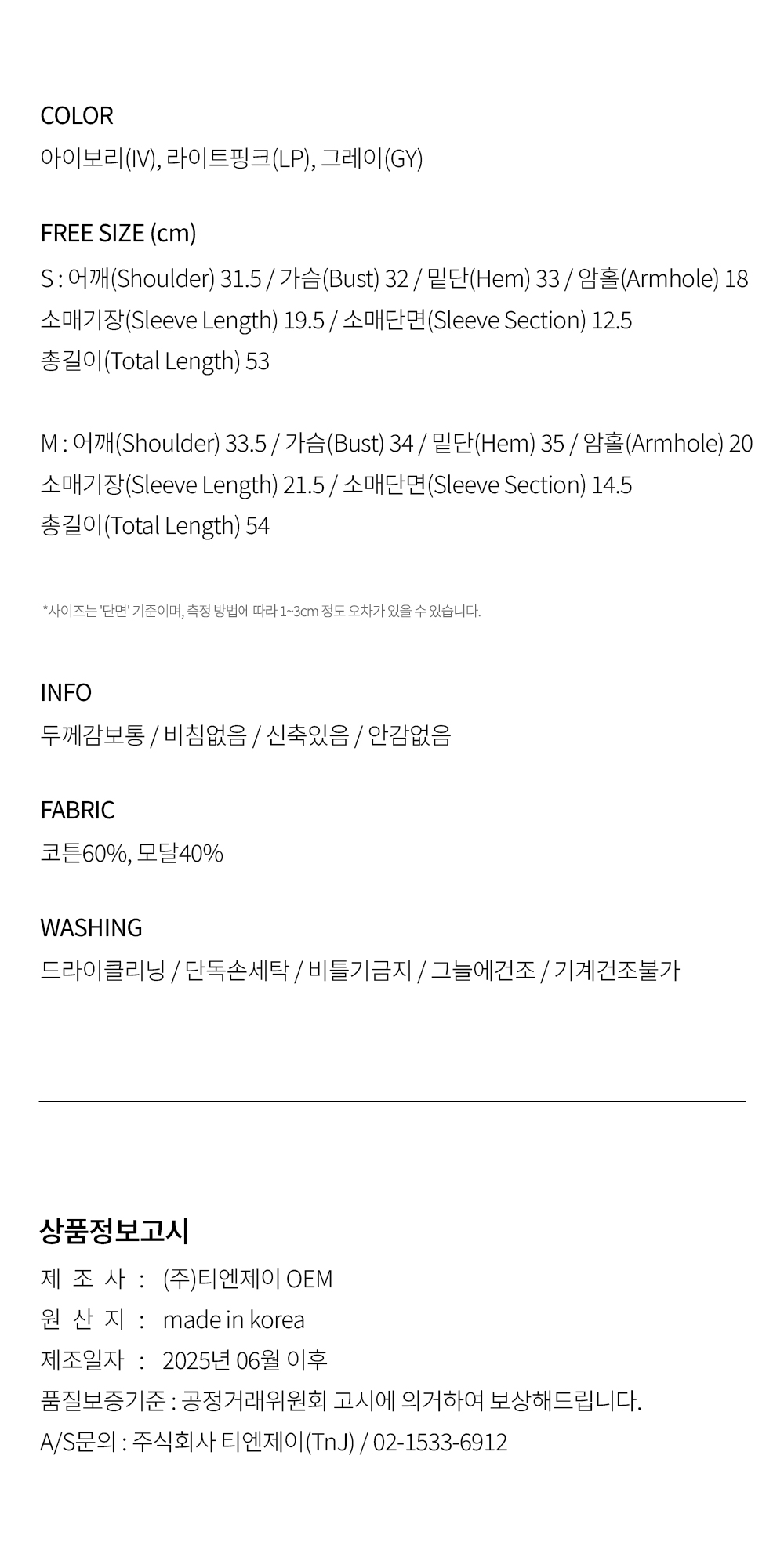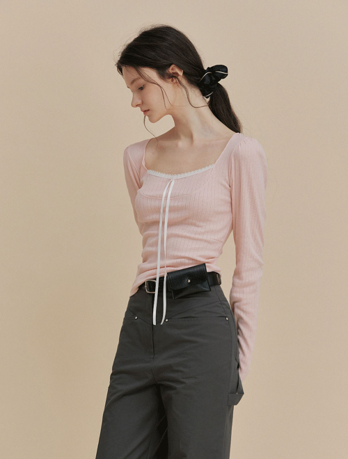 바디에 슬림하게 핏 되는 차들한 실루엣에 센터 타이 디테일은 취향따라 다양하게 연출가능하며 여리해보이면서도 페미닌한 무드로 즐기기 좋습니다 |