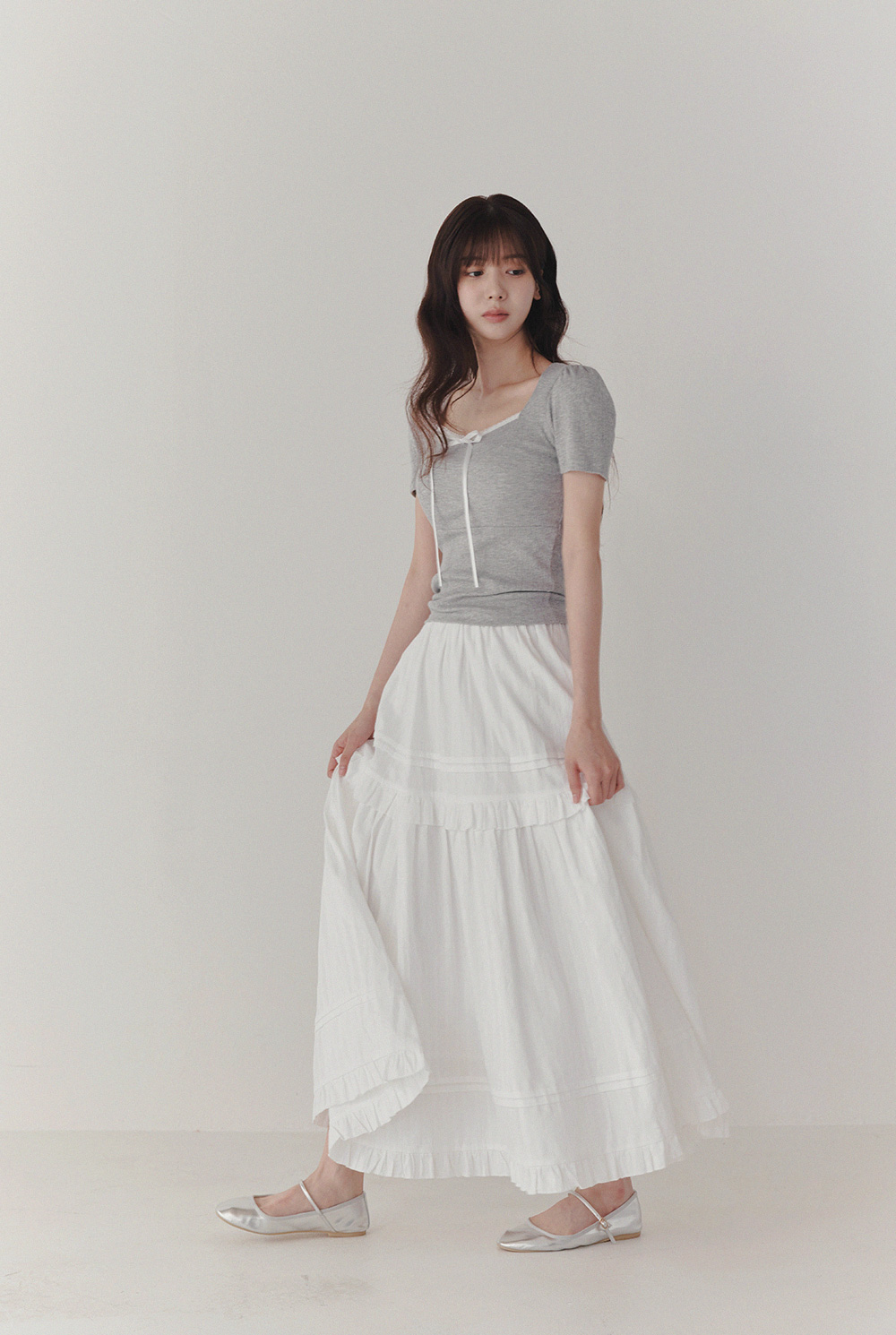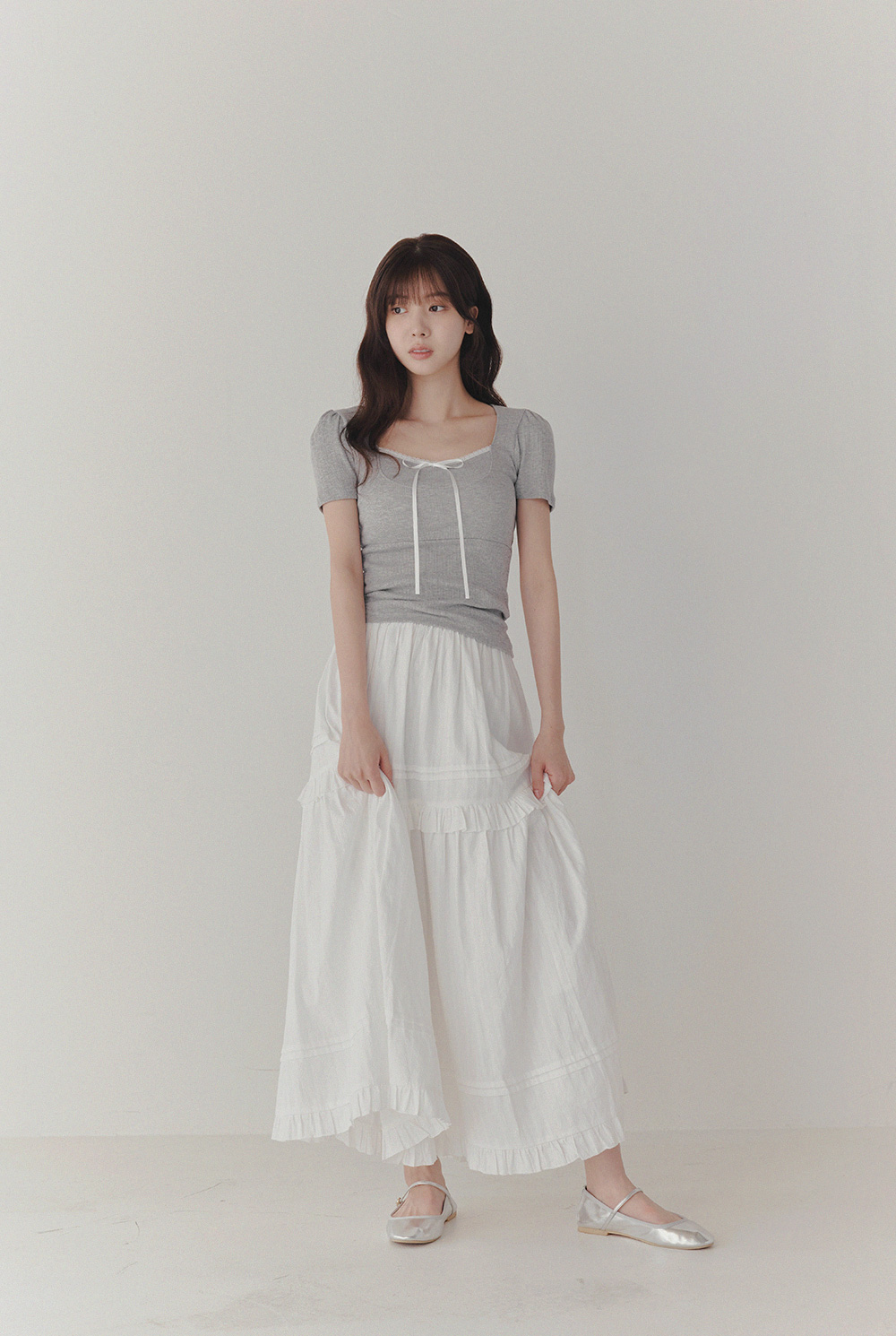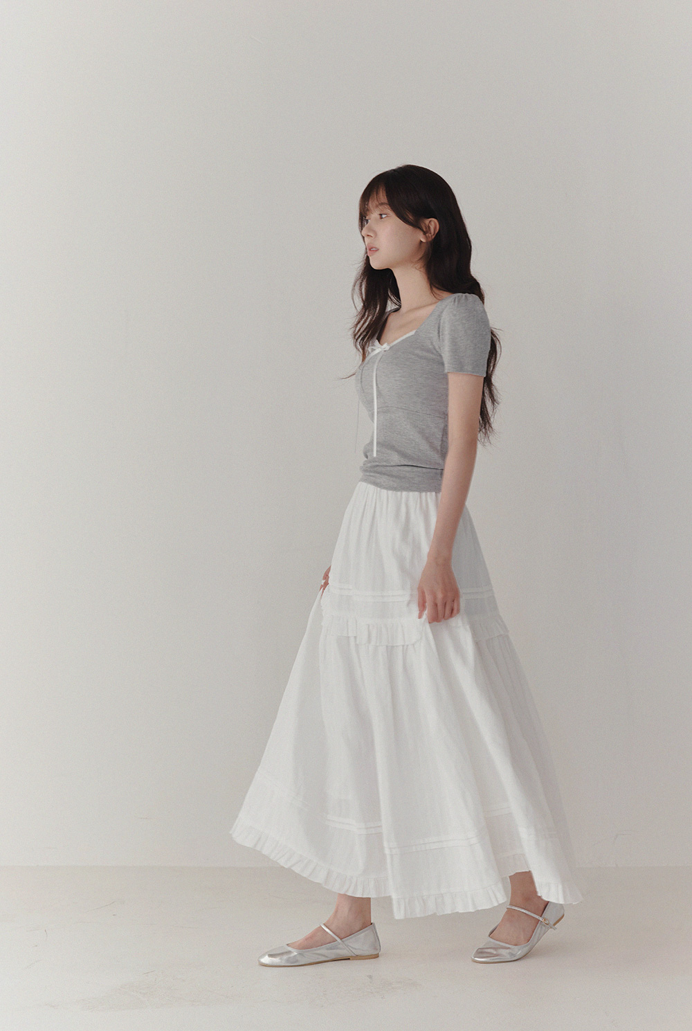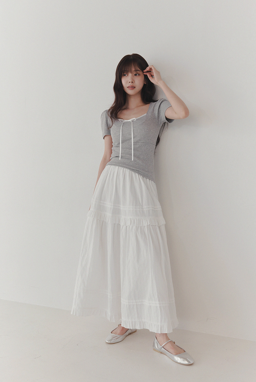 바디에 슬림하게 핏 되는 차들한 실루엣에 센터 타이 디테일은 취향따라 다양하게 연출가능하며 여리해보이면서도 페미닌한 무드로 즐기기 좋습니다 |