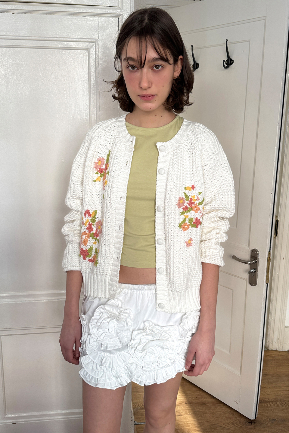 Rose Embroidery Hoodie Tee Peach Fuzz