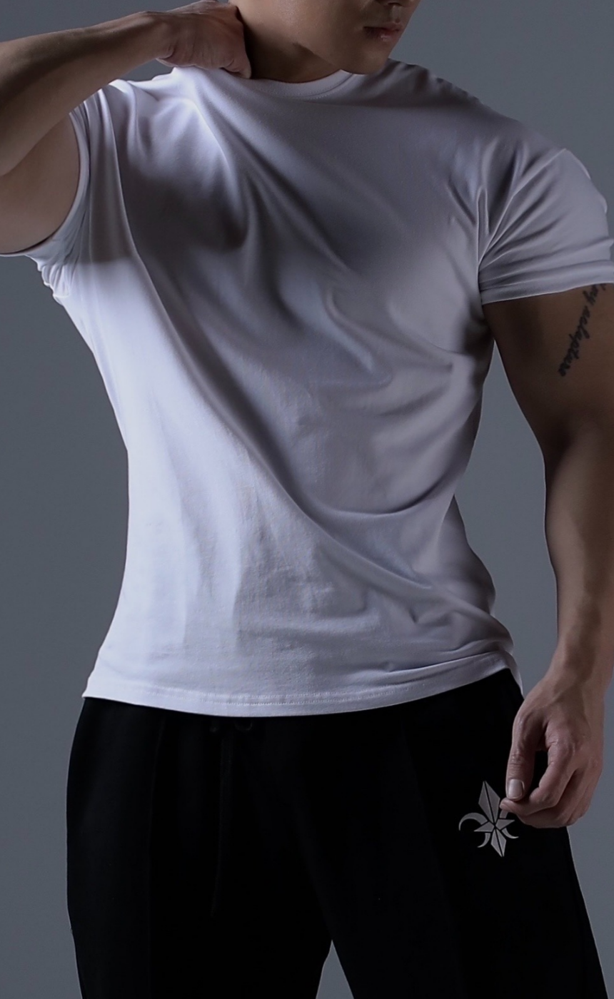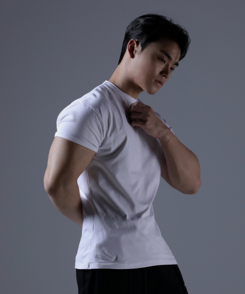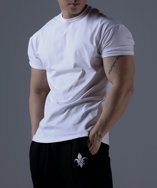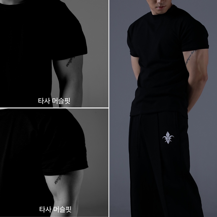 헨리넥 머슬핏 골지 니트 반팔 티셔츠