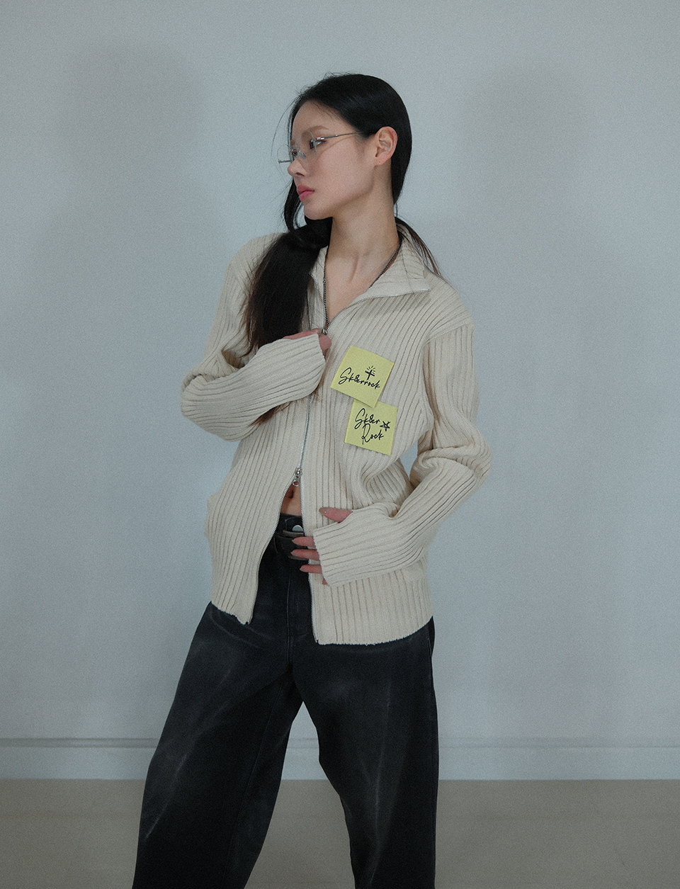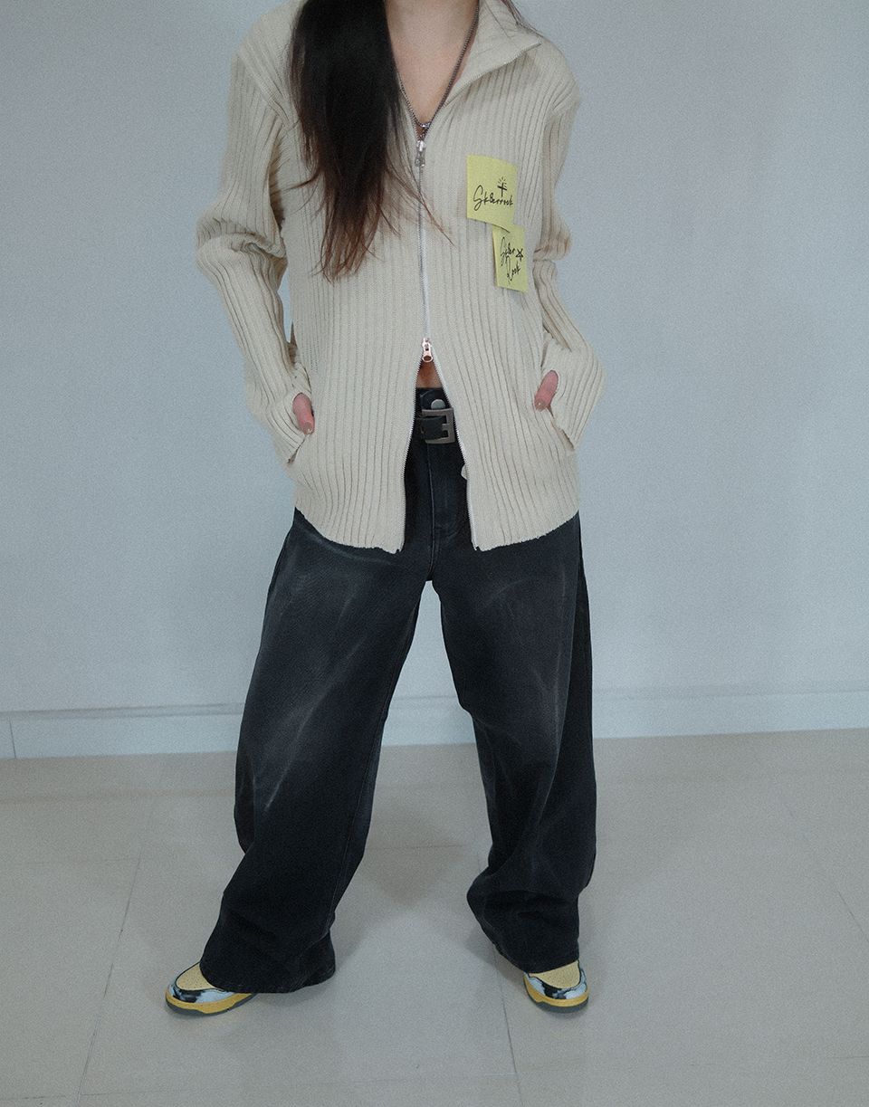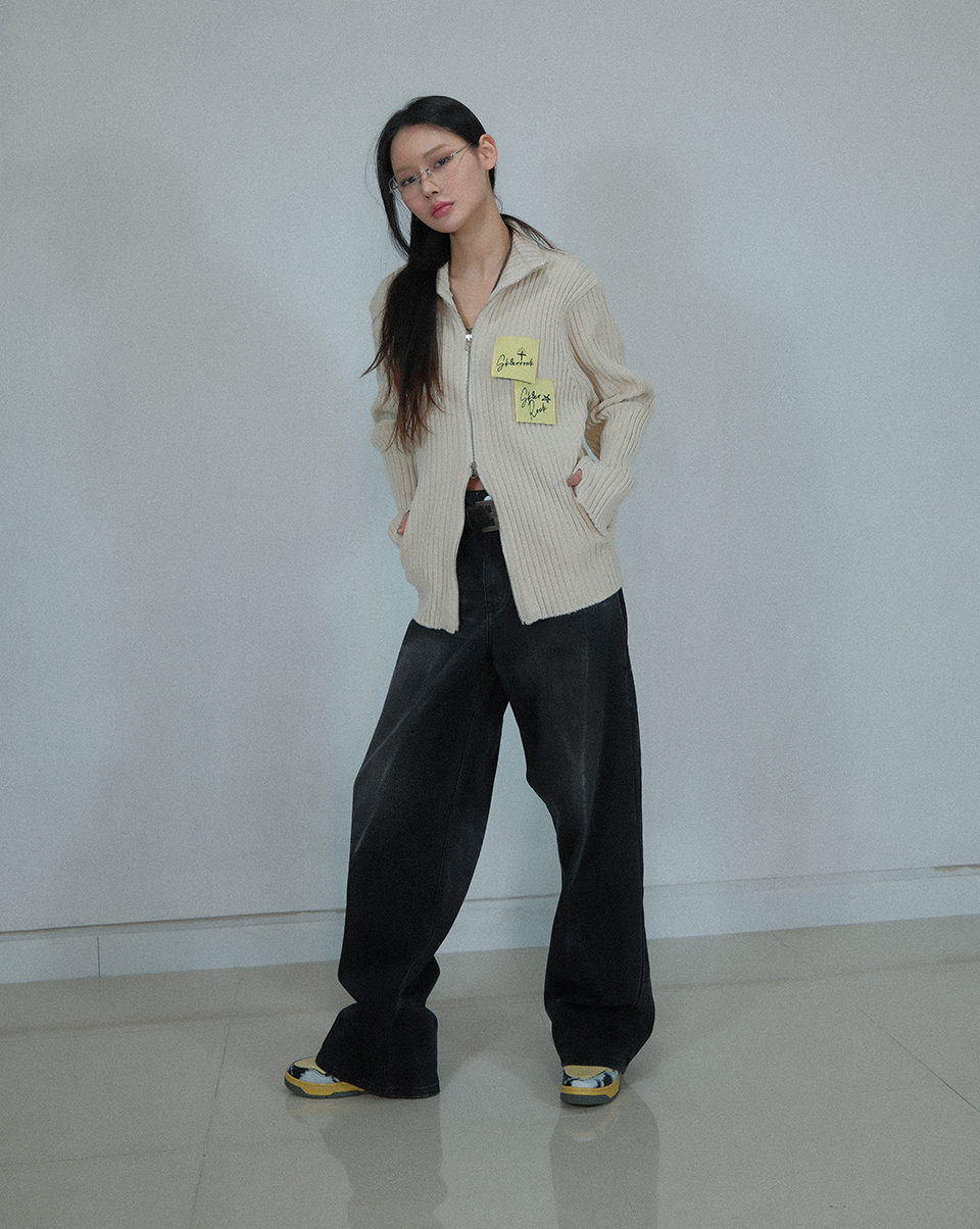 Post-It Knit Zip-Up Jacket ((cream))