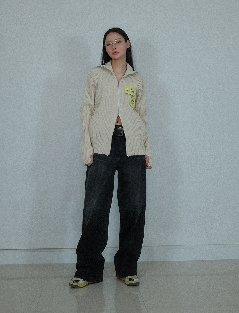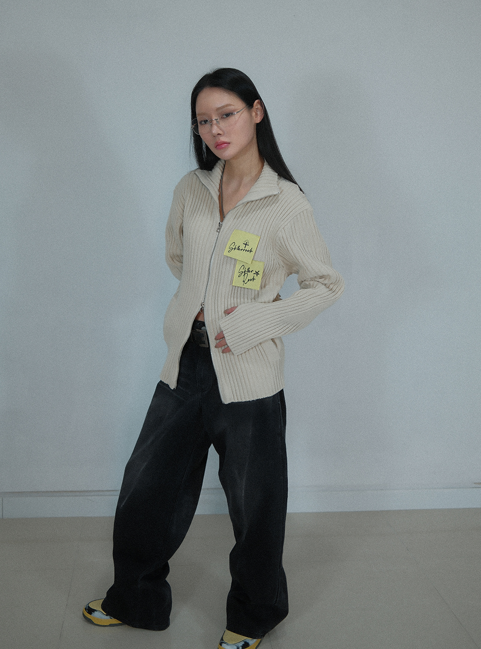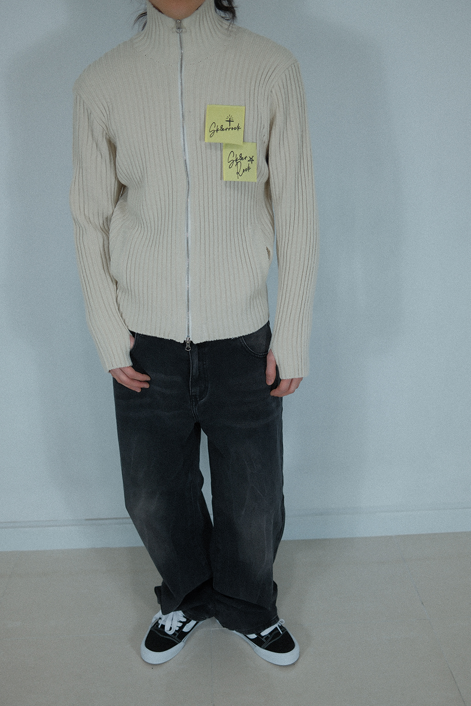 Post-It Knit Zip-Up Jacket ((cream))