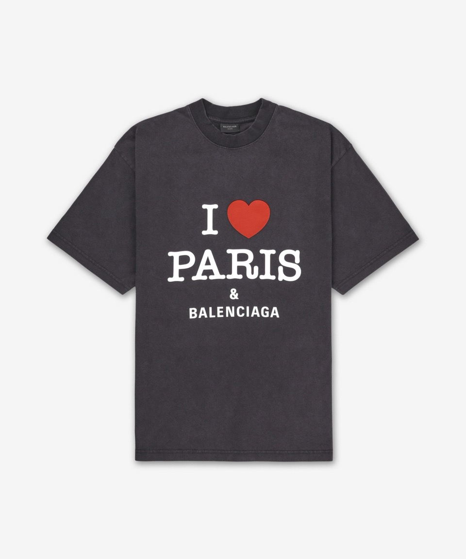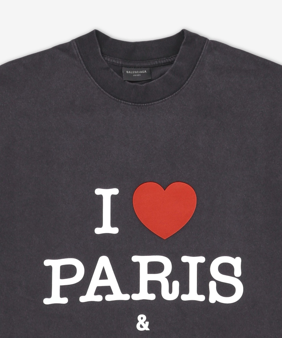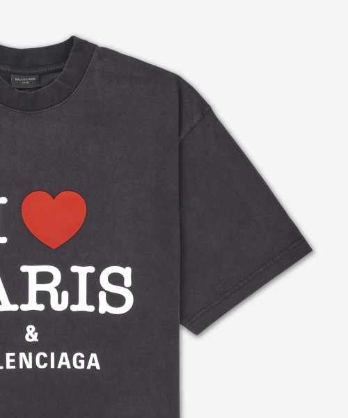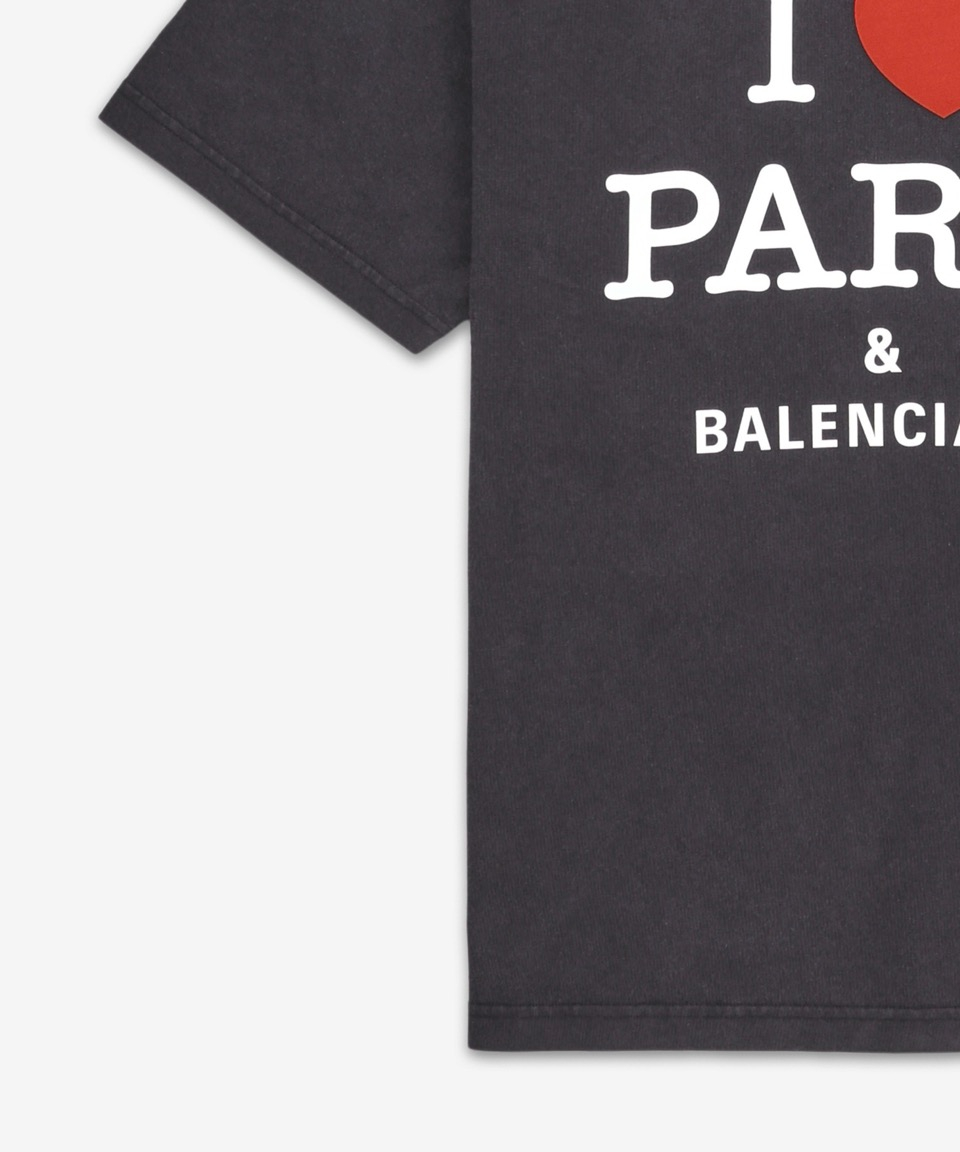 아이 러브 파리 & 발렌시아가 미디엄 핏 반소매 티셔츠 - 페이드 블랙 / 764235TRVU91041