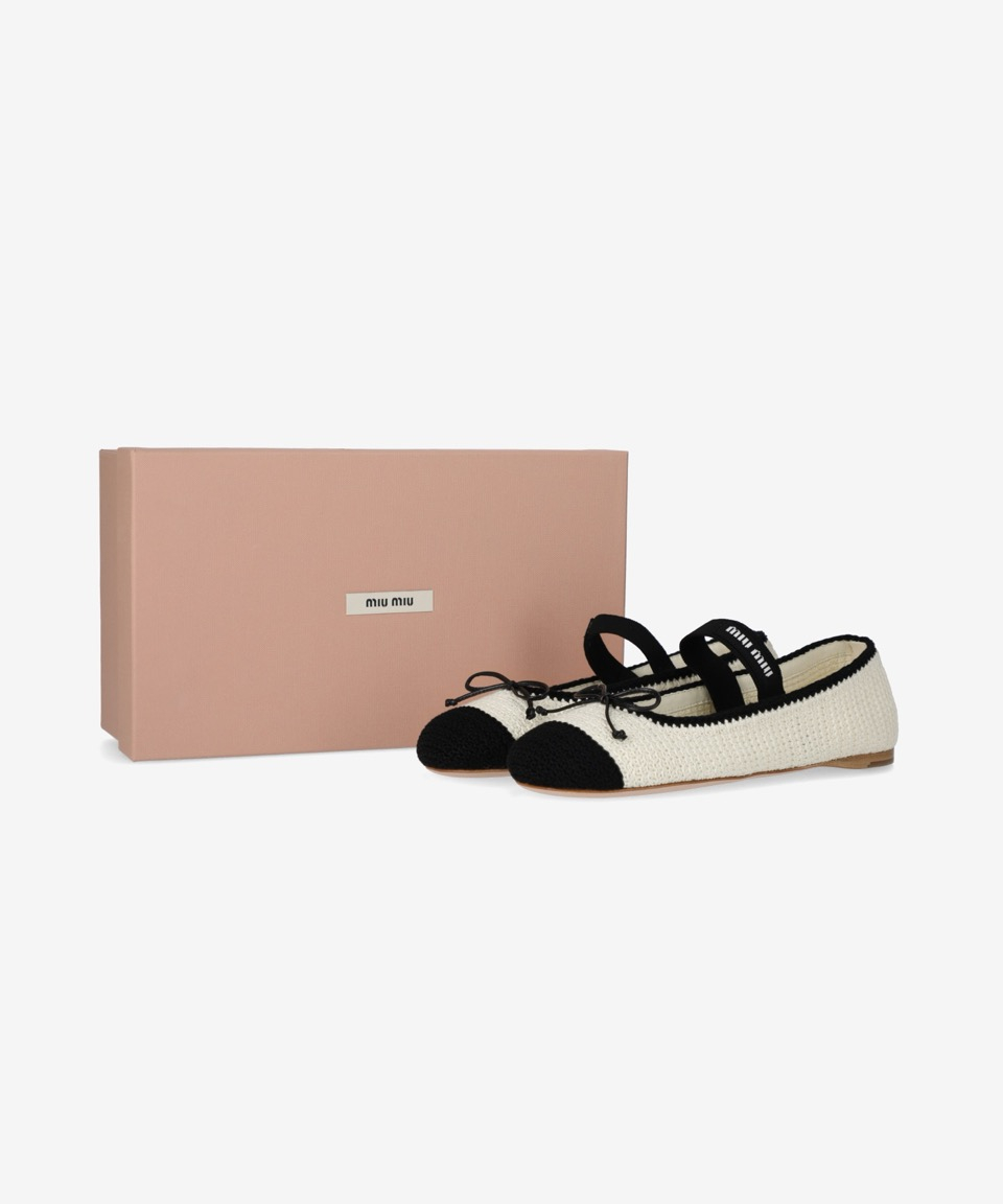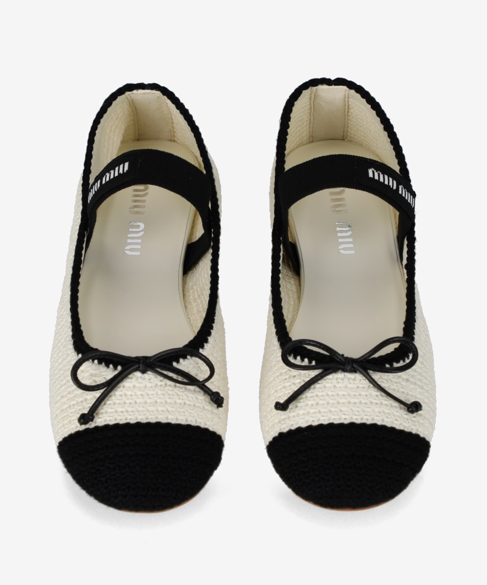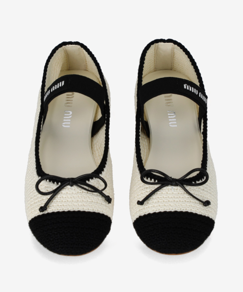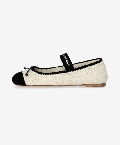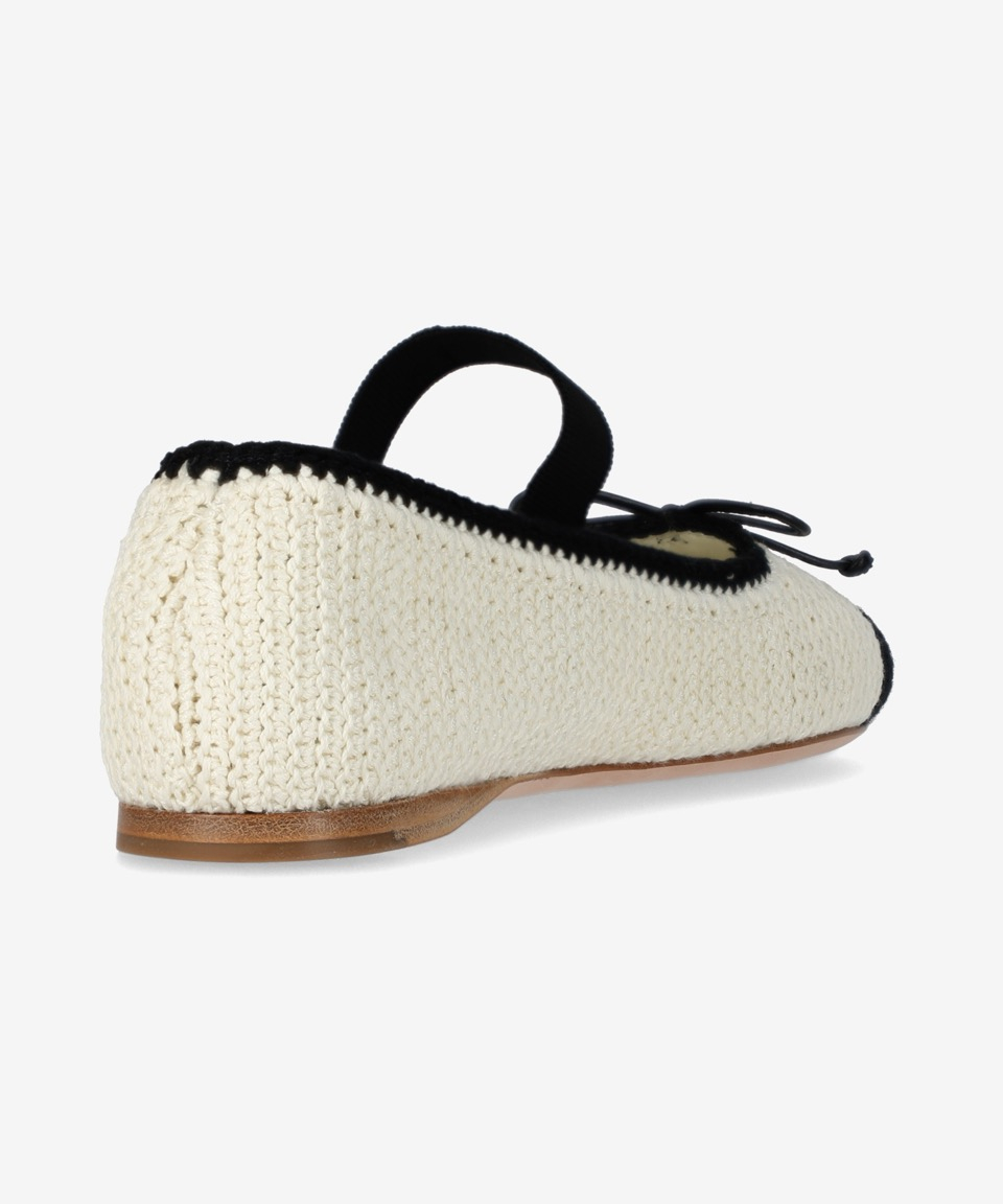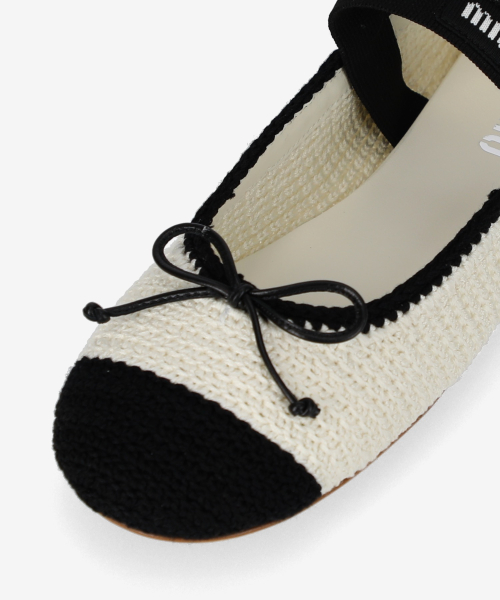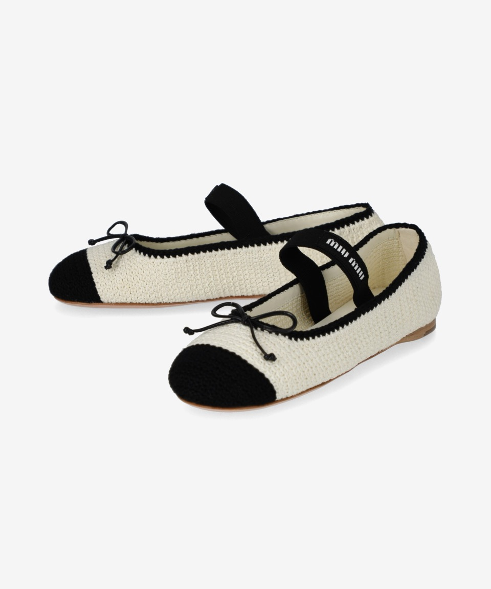 크로셰 발레리나 플랫 슈즈 - 아이보리:블랙 / 5F138E2CQ2F0A72