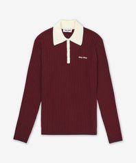 캐시미어 로고 배색 폴로 니트 - 버건디 / MMLA351580F038I