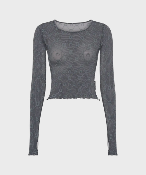 (W) 무노그램 매쉬 플록 롱슬리브 크롭드 탑 바이올렛 MOONOGRAM MESH FLOCK LS CROPPED TOP PU70 AUBERGINE