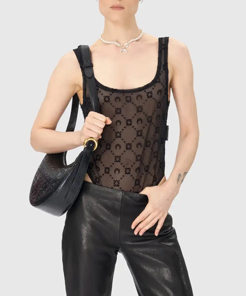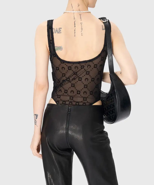 (W) 리사이클드 메쉬 플록 바디수트 블랙 RECYCLED MESH FLOCK BODYSUIT BLACK