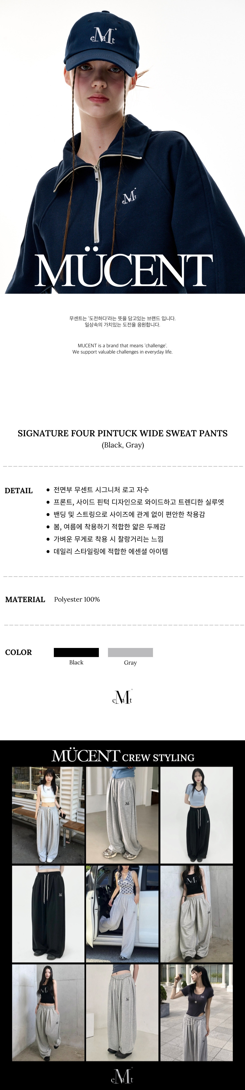 시그니처 4 핀턱 와이드 스웻 팬츠 (2컬러)