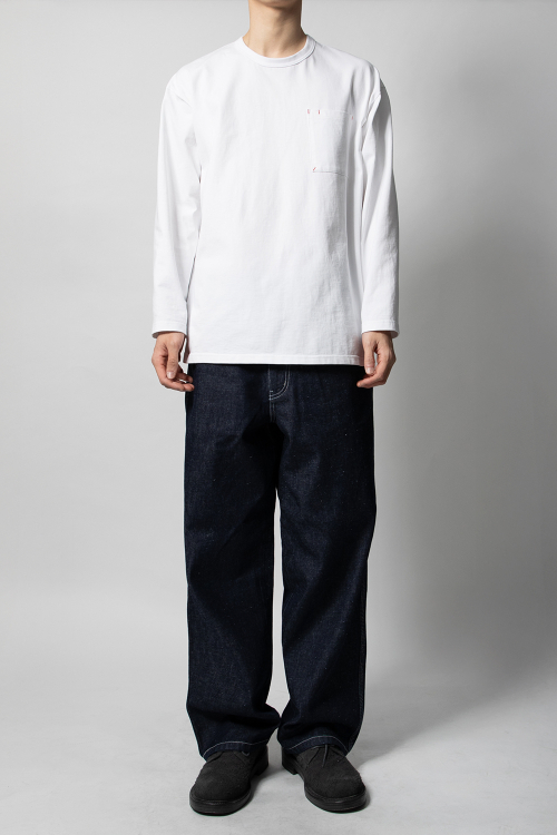 - 세줄 스티치 봉제를 적용하여 견고한 느낌과 함께 데님 특유의 빈티지한 요소를 부각시킴