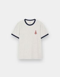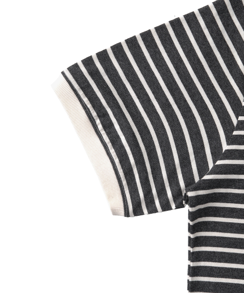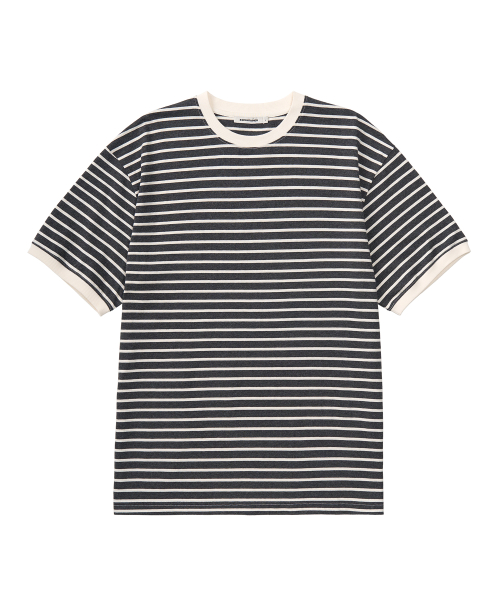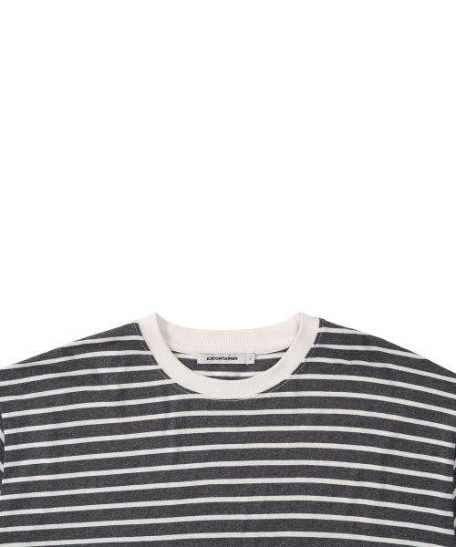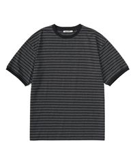 리브드 스트라이프 하프 링거 티셔츠 (CHARCOAL GREY)