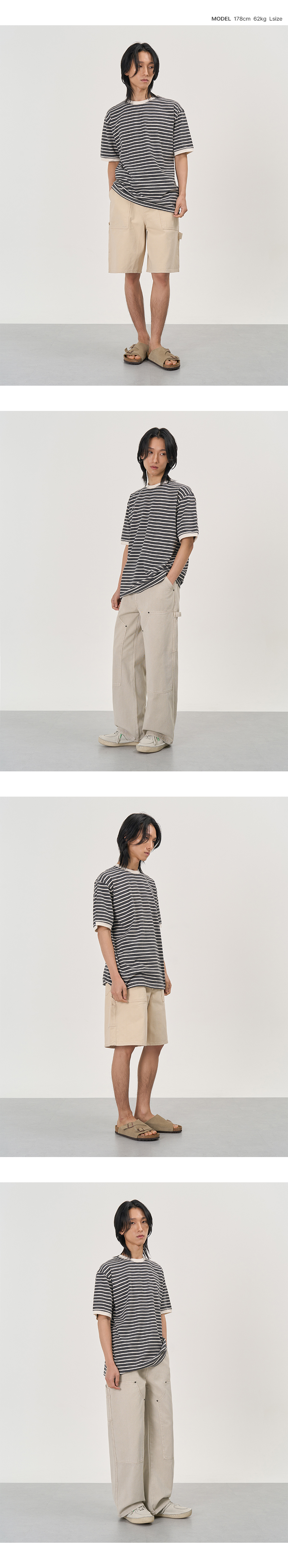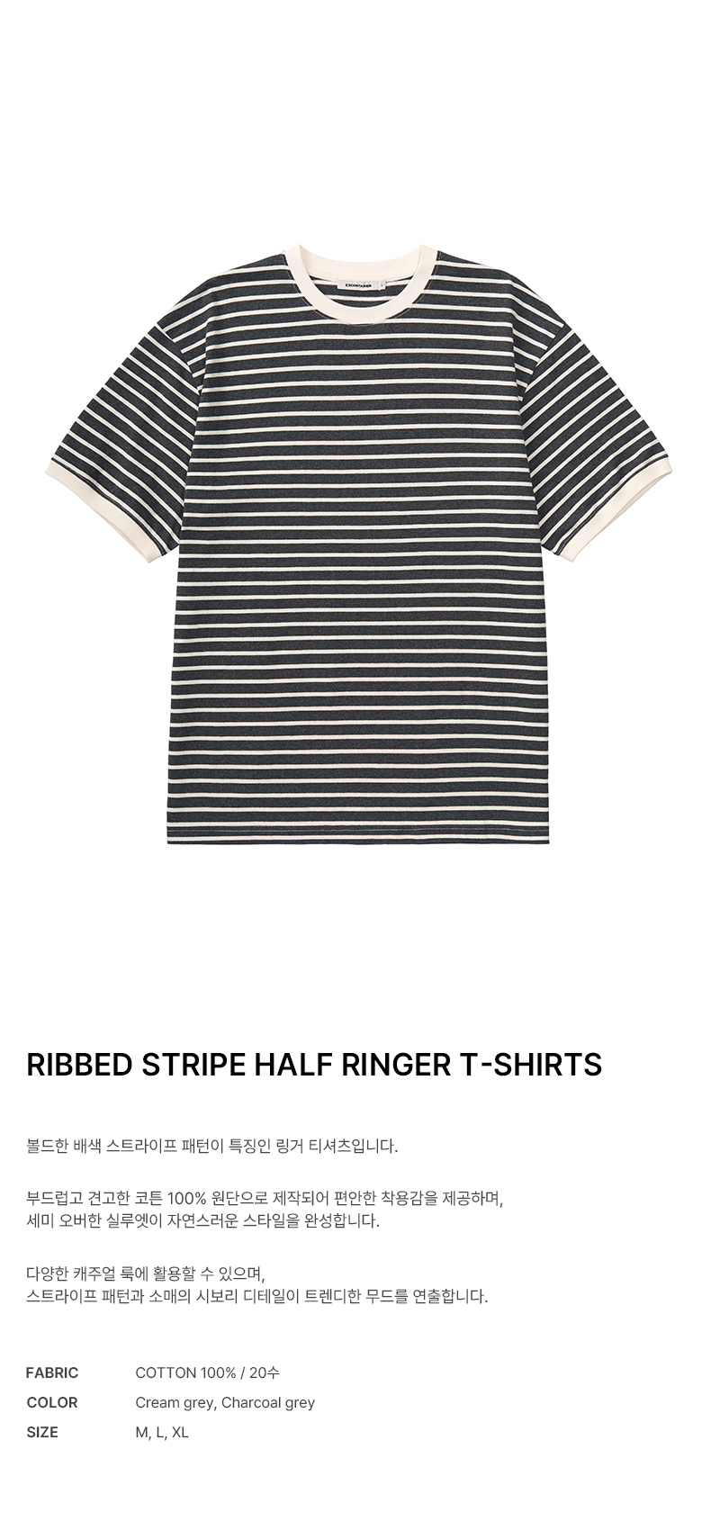 리브드 스트라이프 하프 링거 티셔츠 (CREAM GREY)