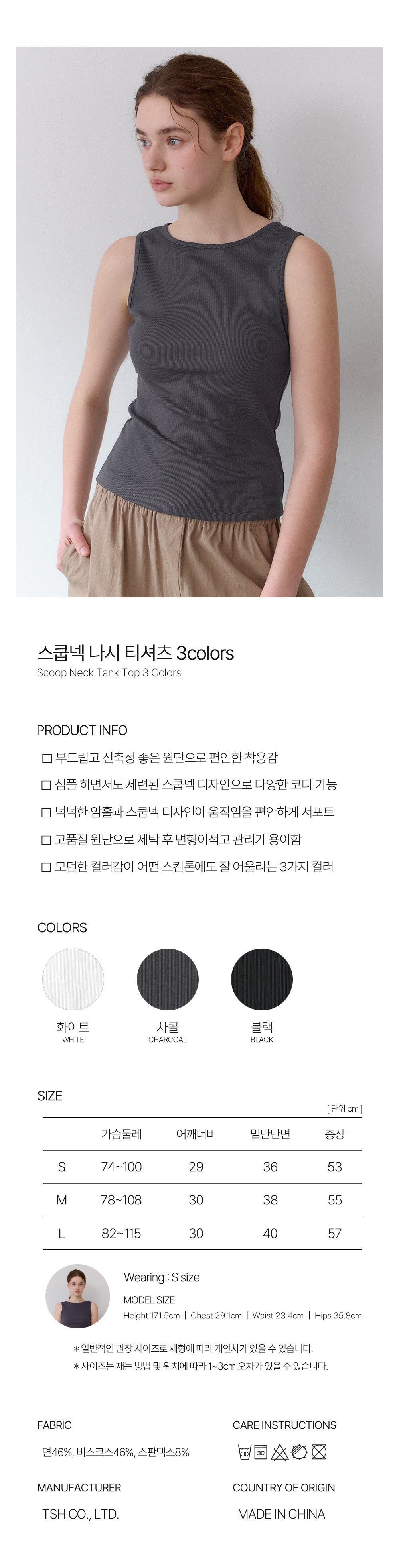 스쿱넥 나시 티셔츠 3colors