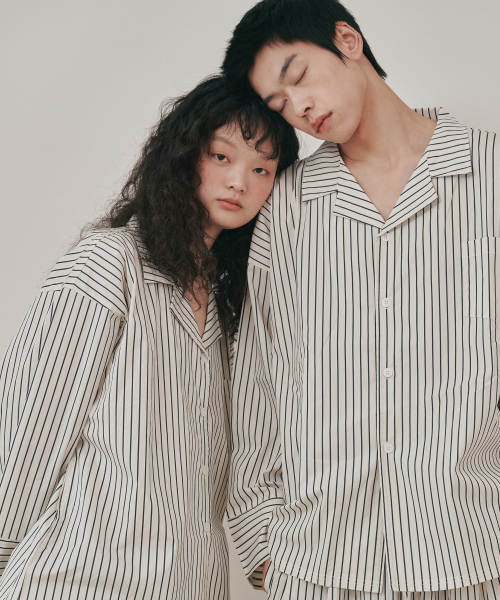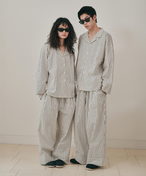 (uni)도미토리 빈 스트라이프 파자마 블랙화이트