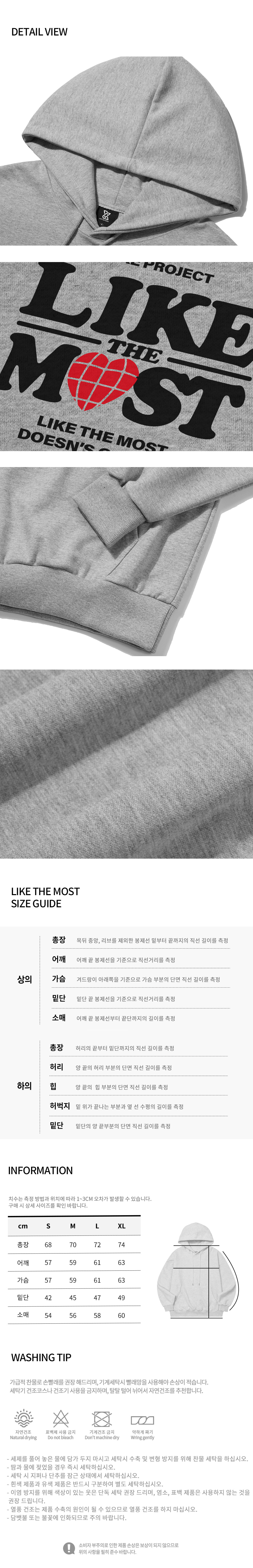 라이크더모스트(LIKE THE MOST)의 라이크(LIKE)는 'Like, Infinite, Keen, Excellent'의 약자입니다. '좋아하는 것은 사라지지 않는다'라는 모티브 아래 소유하고자 하는 열망을 훌륭하고 좋은 것으로 끝없이 채우고자 합니다.