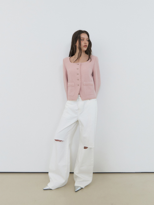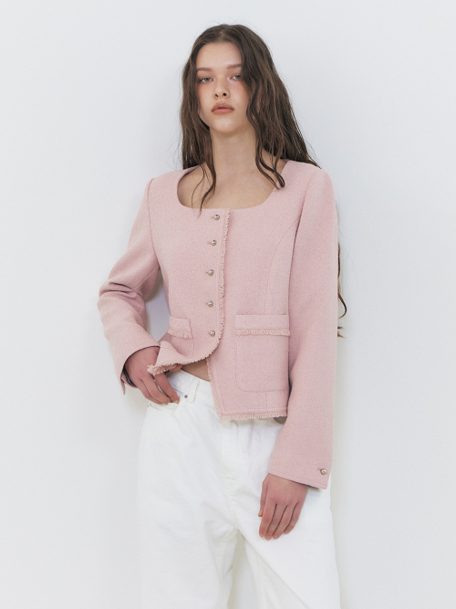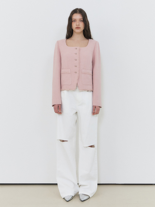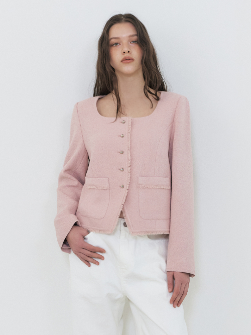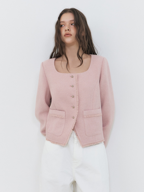 Button Square Tweed Jacket, Pink