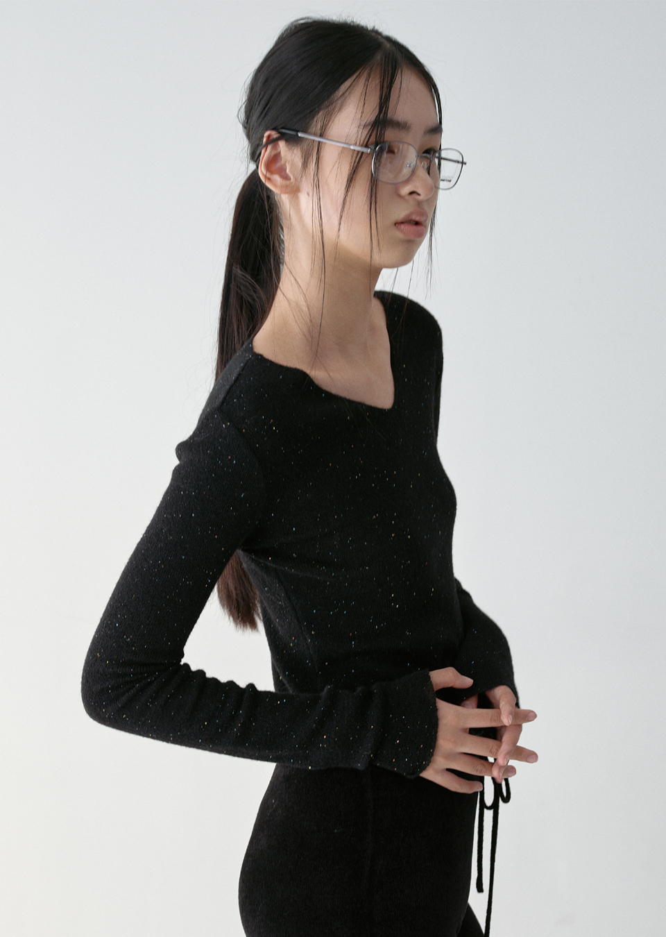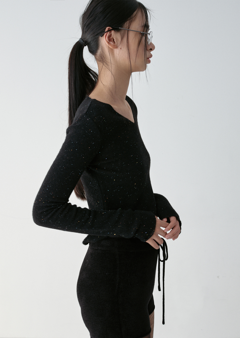 * 스팽글이 원사에 달린 형태지만, 강한 마찰 노출 및 세탁 시 떨어질 수 있으니 유의하시기를 바랍니다.