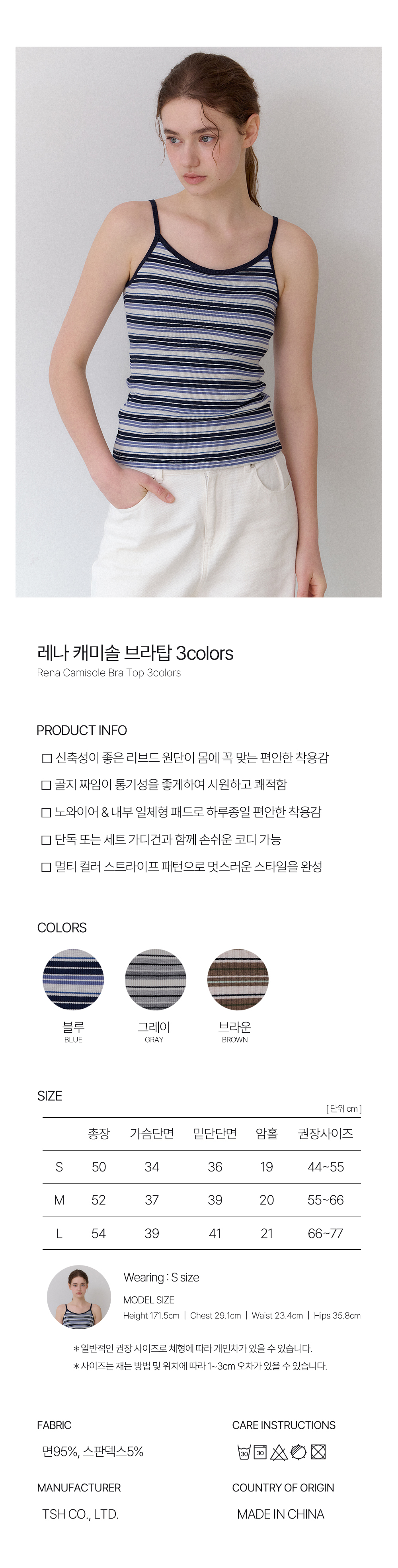 레나 스트라이프 캐미솔 브라탑 3colors