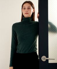 벨벳터치 골지 목폴라 티셔츠 - 그린