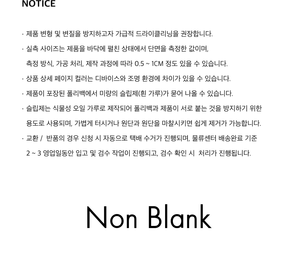 넌블랭크(NONBLANK)는 오래도록 소유하고 싶은 것에 대한 고찰에서부터 시작하였습니다. '본질에 대한 충실함'을 바탕으로 높은 완성도의 제품을 통해 브랜드만의 자연스럽고 미니멀한 스타일링을 제시합니다.