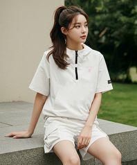우먼즈 에센셜 컴포트핏 카라 티셔츠(라이트 핑크)