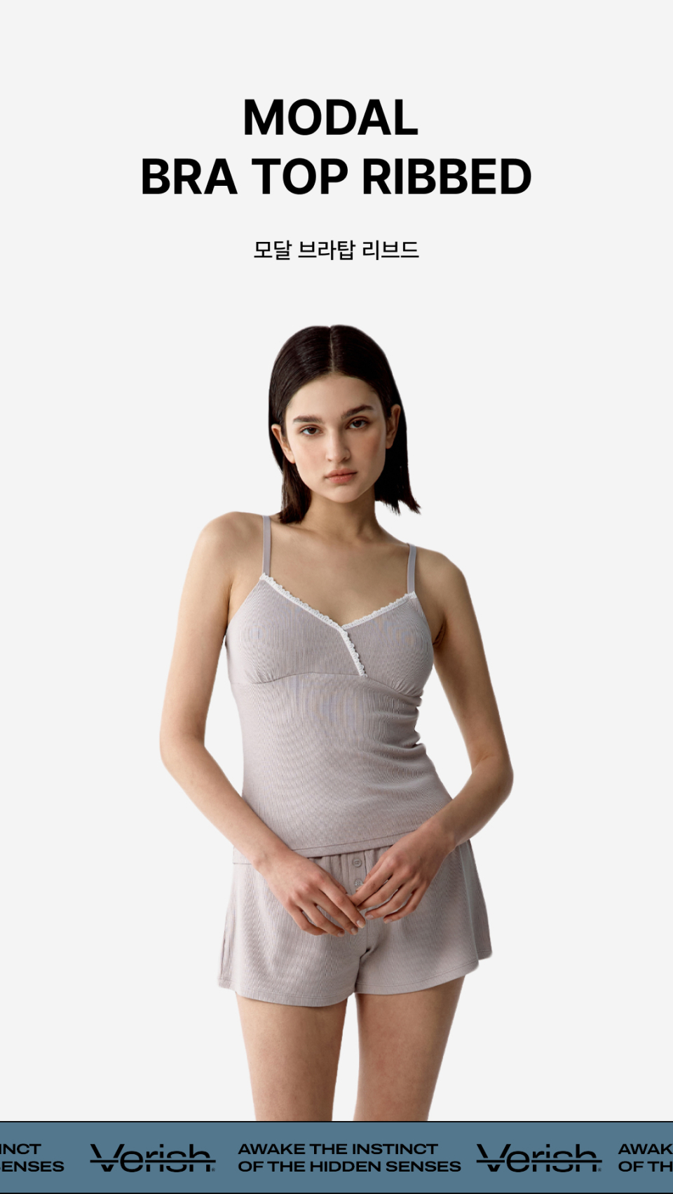 베리시(VERISH)는 'You are what you feel(좋은 느낌이, 좋은 나를 만든다)'라는 슬로건으로, 피부와 가장 가까운 언더웨어를 제안하는 브랜드입니다. 심리스 & 와이어리스 기술력과 부드러운 감촉으로, 보이는 것만큼 느끼는 것이 중요한 필링 웨어를 선보입니다.