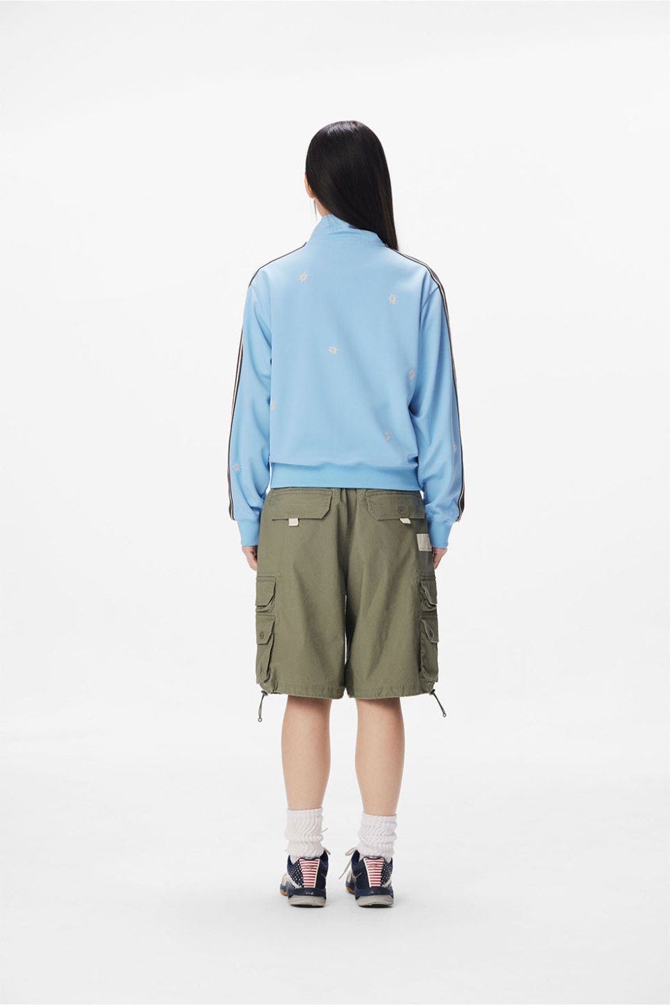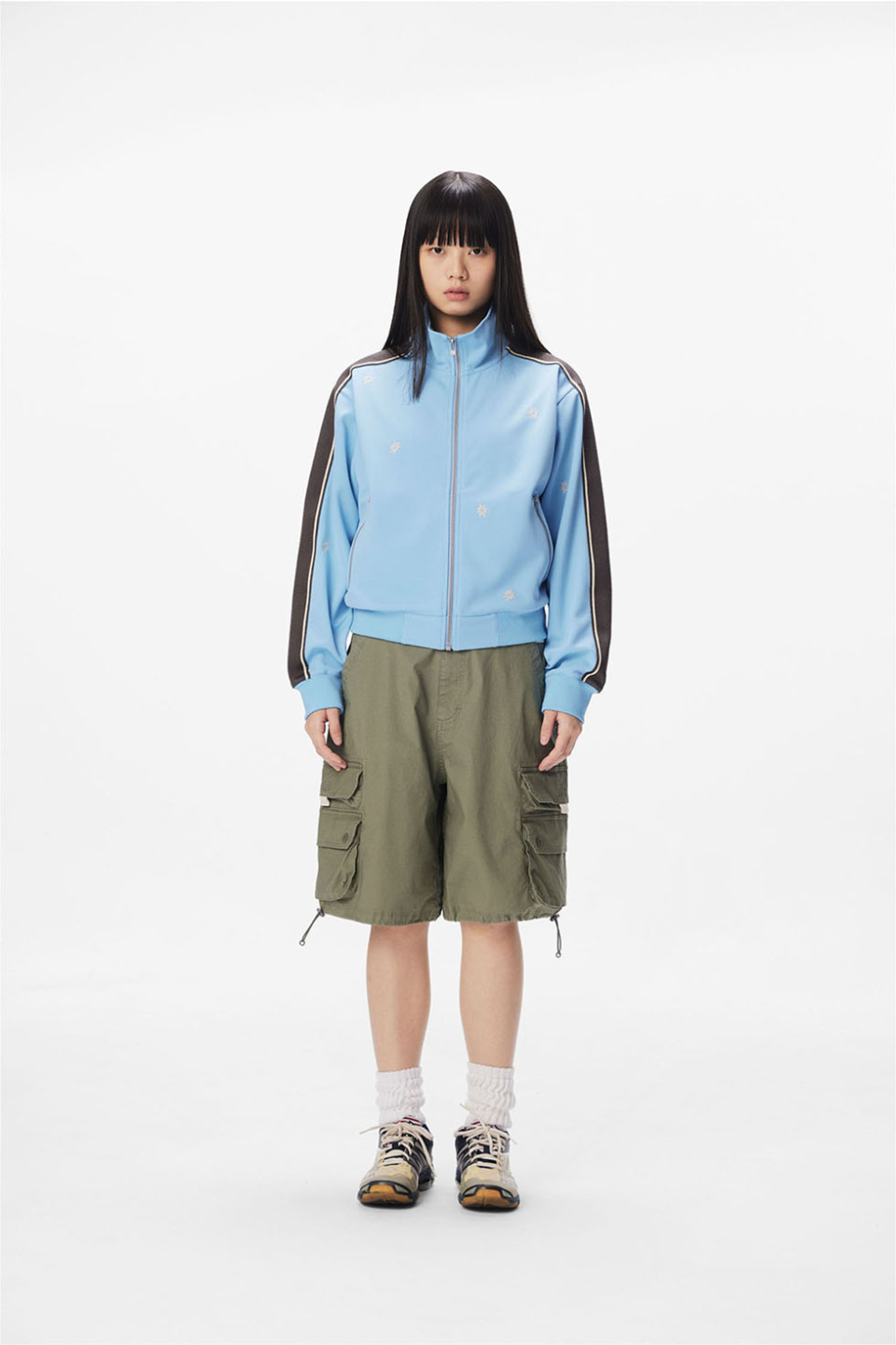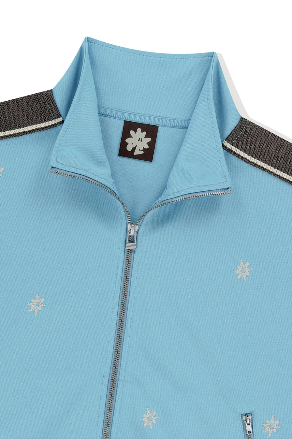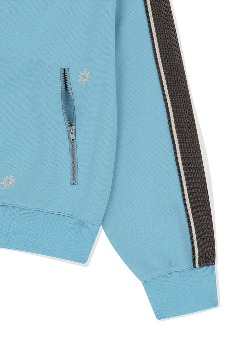 · 몸판 자수와 소매 테이프 디테일