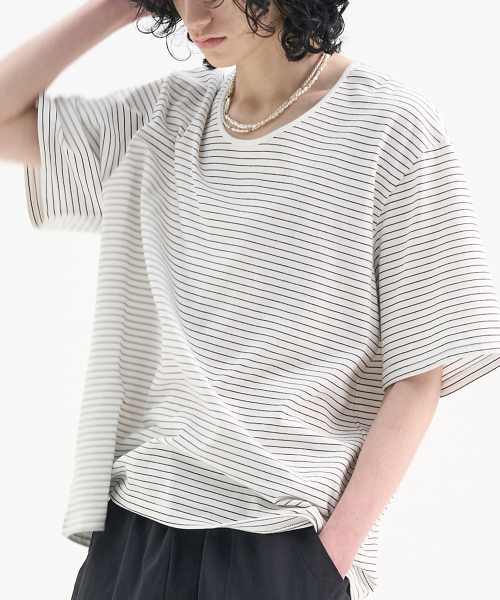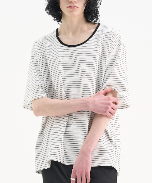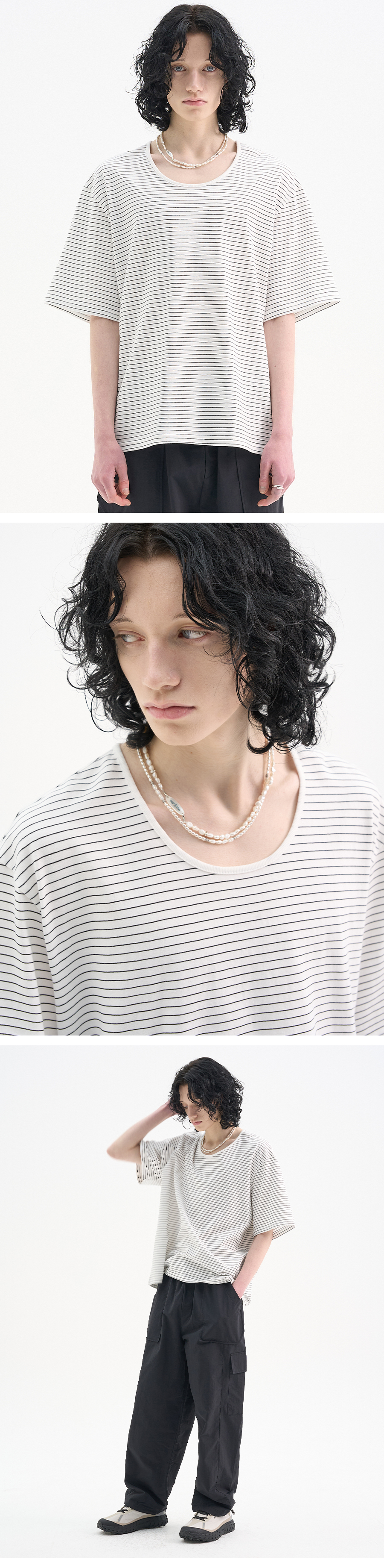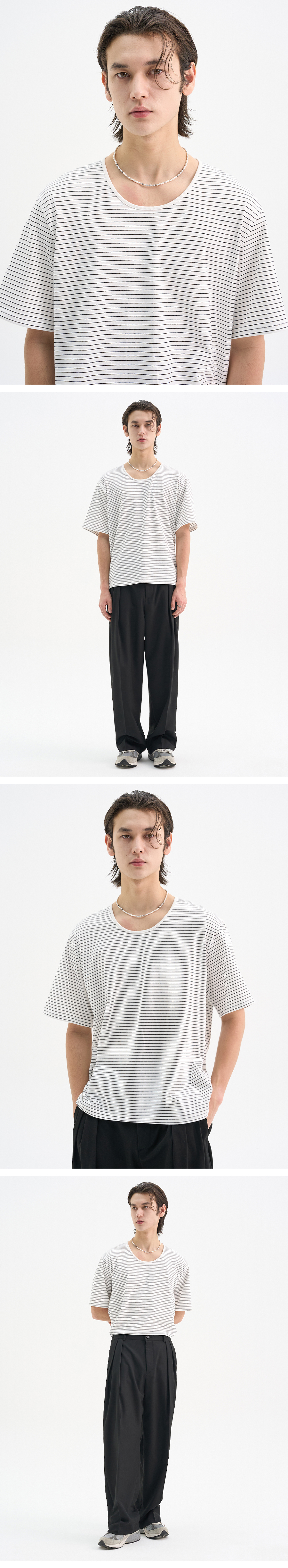 베이직 유넥 실켓 코튼 티셔츠_ST 넥라인 화이트