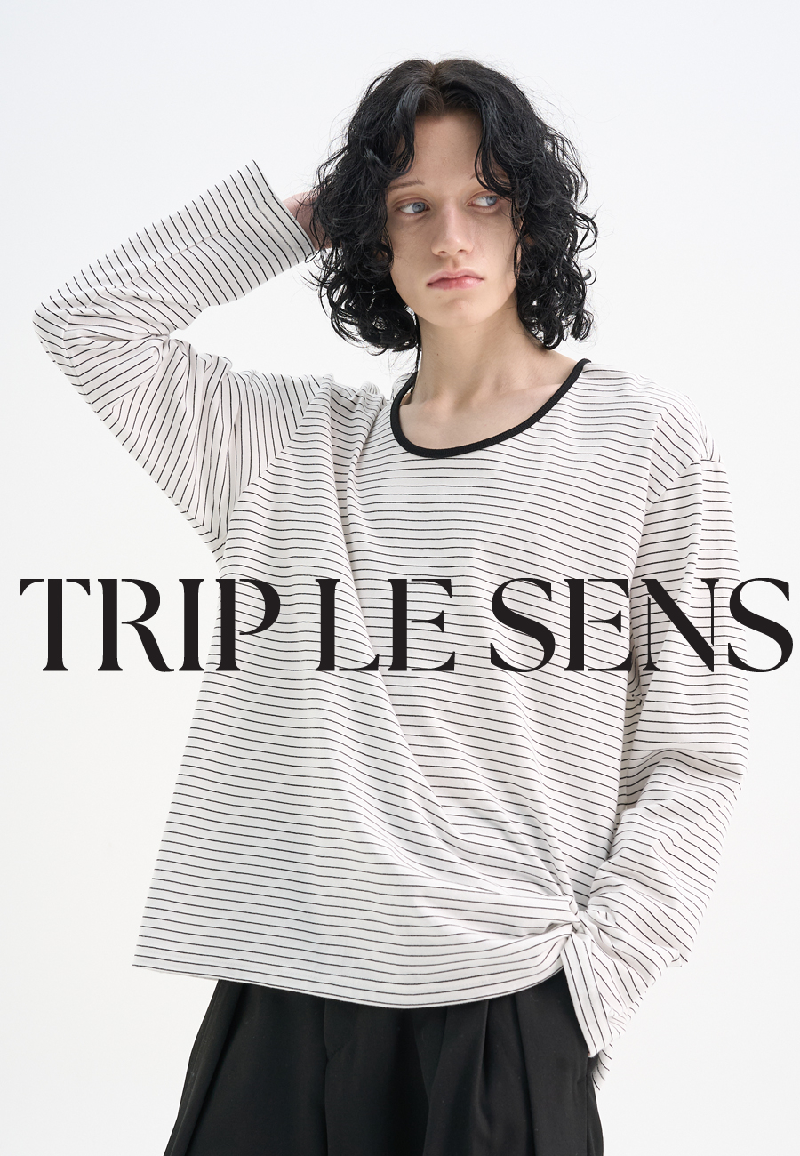 트립 르 센스(TRIP LE SENS)의 브랜드의 방향성. '의복은 그저 착용하는 것이 아닌, 자기 주체를 표현하는 감각의 형상화'입니다. 매 시즌 현대의 흐름과 과거의 장점을 특정하여 "텍스처의 소재 감각"과, 그에 맞는 "특유의 실루엣" 표현에 집중합니다.