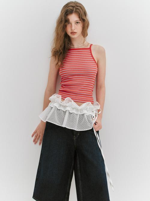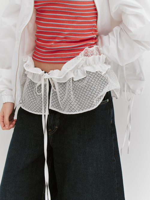 - 다이아몬드 쉐입의 레이스 원단으로 제작된 랩 스커트