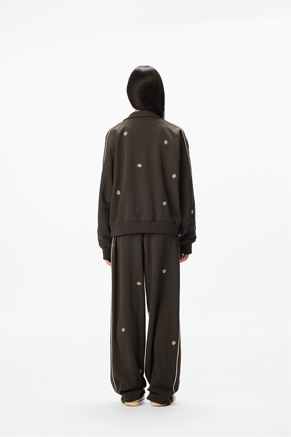 · 몸판 자수와 소매 테이프 디테일
