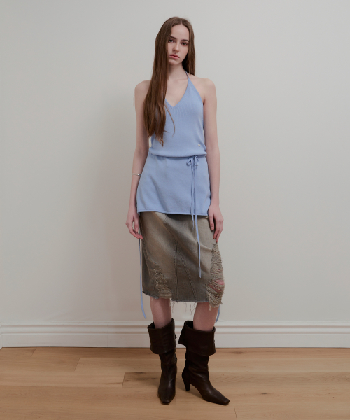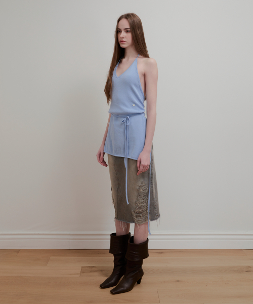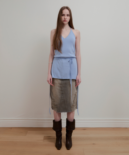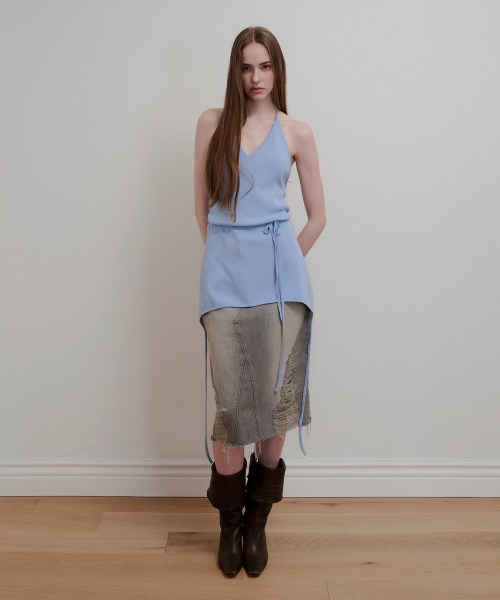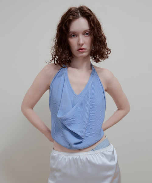 LAYERED HALTER NECK KNIT - SKY