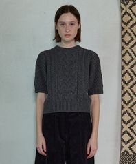 PUFF SLEEVE CABLE KNIT - CHARCOAL