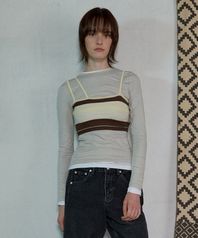 STRIPE KNIT BRA TOP - BROWN/LEMON