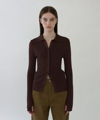 BOAT NECK TWO WAY CARDIGAN - BRICK BROWN