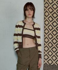 STRIPE KNIT CARDIGAN - BROWN/LEMON