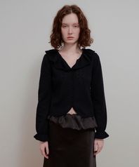 HEART RUFFLE SKASHI CARDIGAN - BLACK